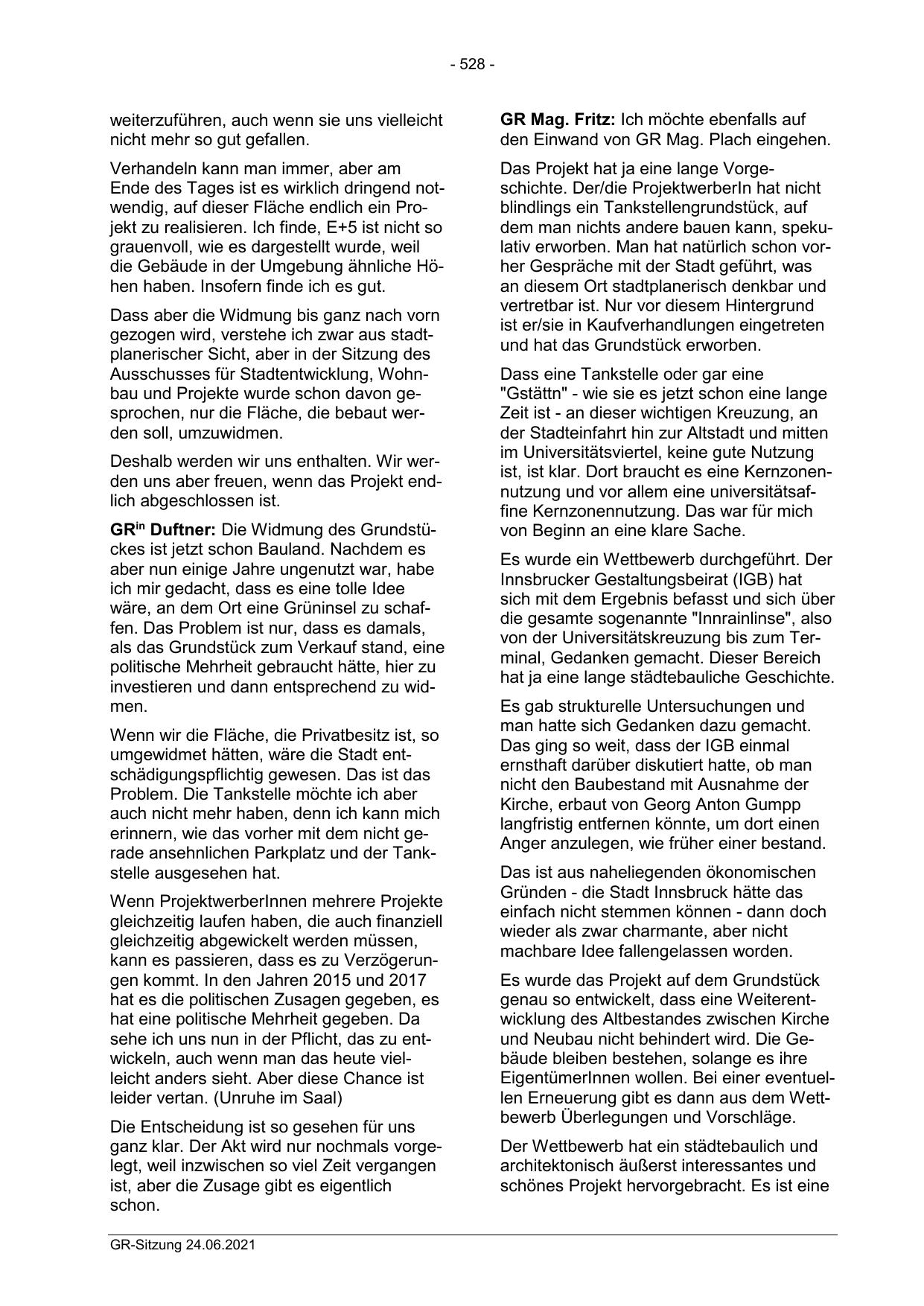 Ausschusses für Stadtentwicklung, Wohnbau und Projekte wurde schon davon gesprochen, nur die Fläche, die bebaut werden soll, umzuwidmen.
