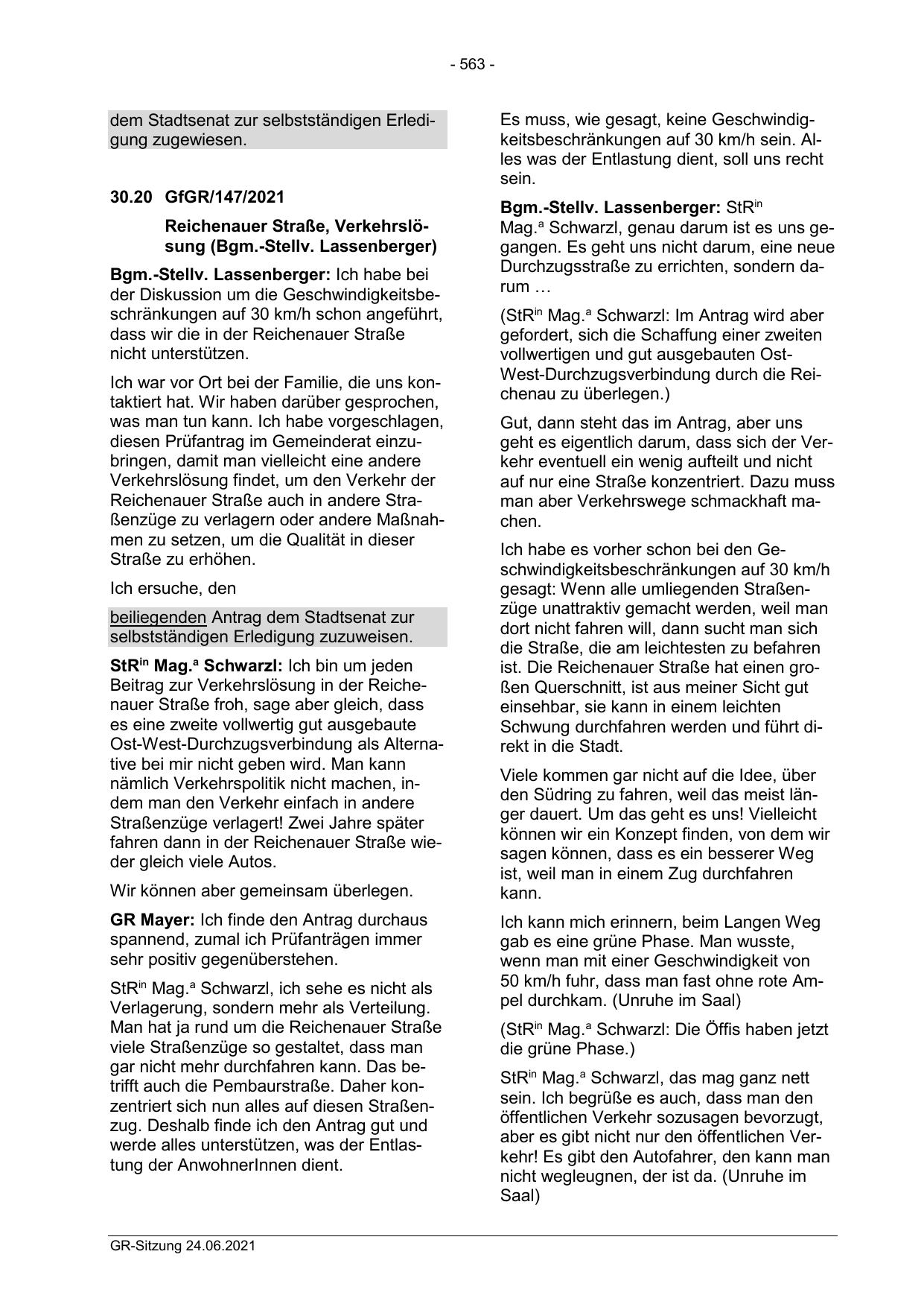 Reichenauer Straße, Verkehrslösung (Bgm.-Stellv. Lassenberger)