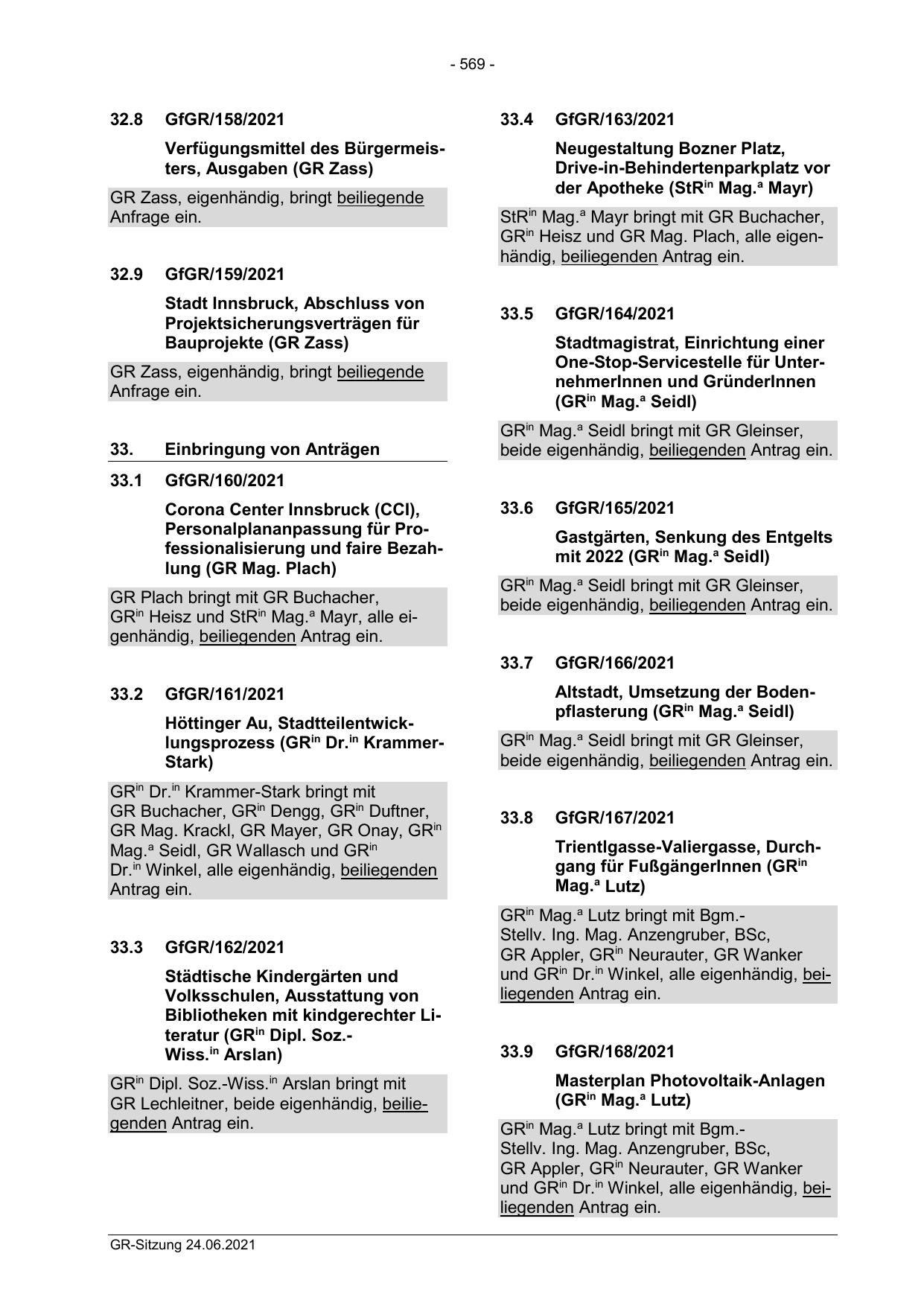 GRin Heisz und StRin Mag.a Mayr, alle eigenhändig, beiliegenden Antrag ein.