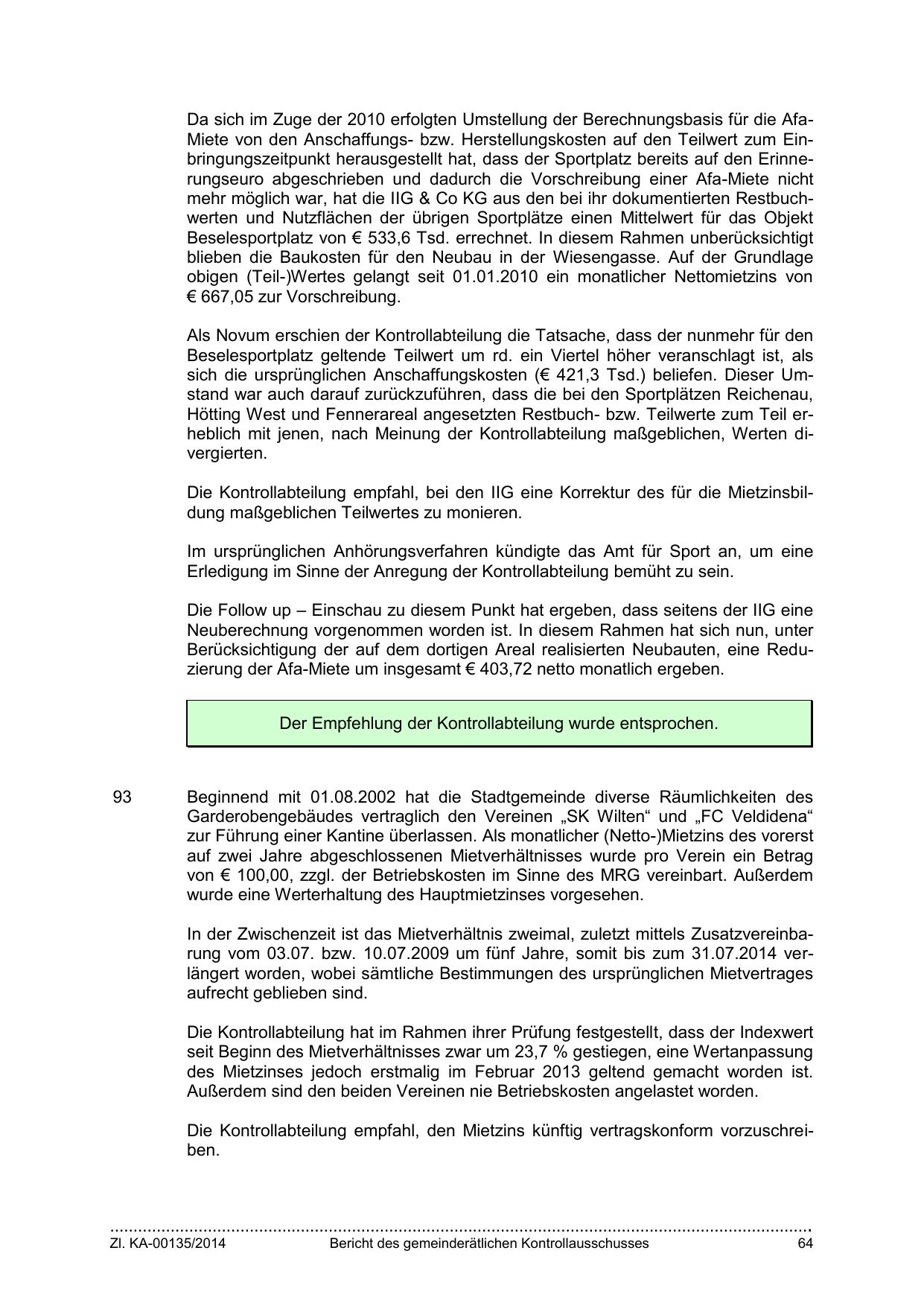 sich die ursprünglichen Anschaffungskosten (€ 421,3 Tsd.) beliefen. Dieser Umstand war auch darauf zurückzuführen, dass die bei den Sportplätzen Reichenau,