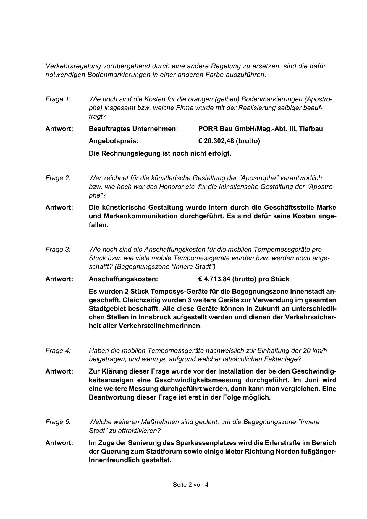 Stadtgebiet beschafft. Alle diese Geräte können in Zukunft an unterschiedlichen Stellen in Innsbruck aufgestellt werden und dienen der Verkehrssicherheit aller VerkehrsteilnehmerInnen.