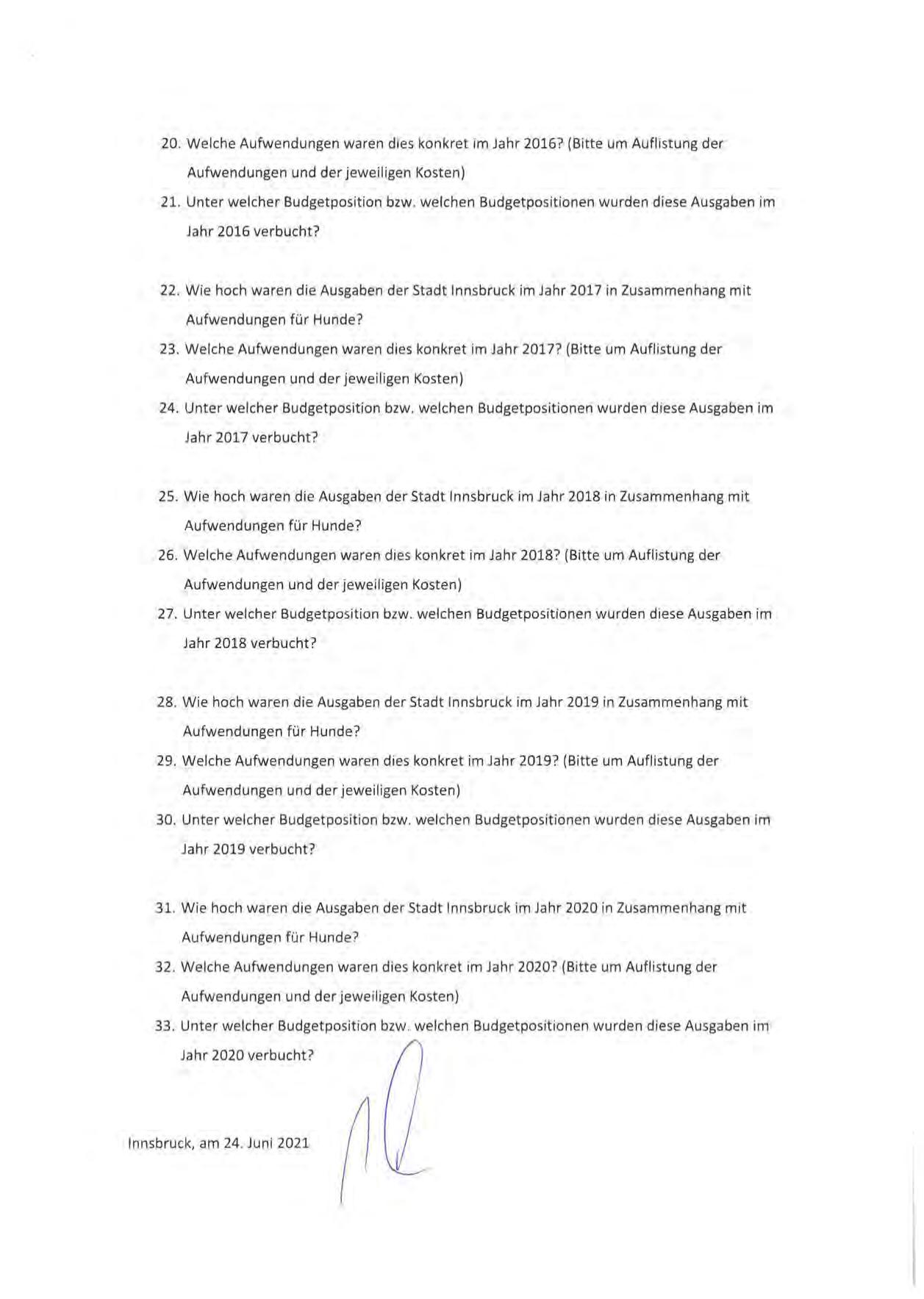 31. Wie hoch waren die Ausgaben der Stadt Innsbruck im Jahr 2020 in Zusammenhang mit