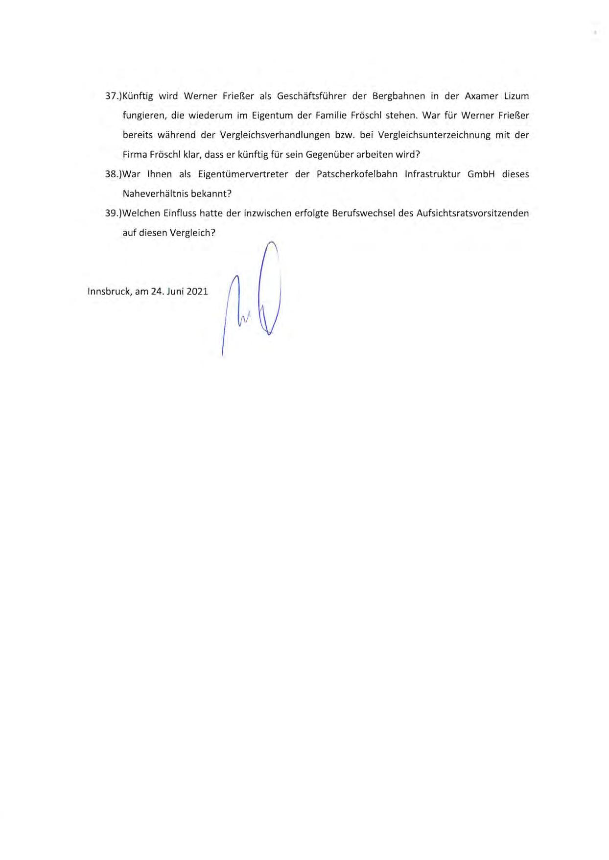 38.)Wa r Ihnen als Eigentümervertreter der Patscherkofe lbahn Infrastruktur GmbH dieses