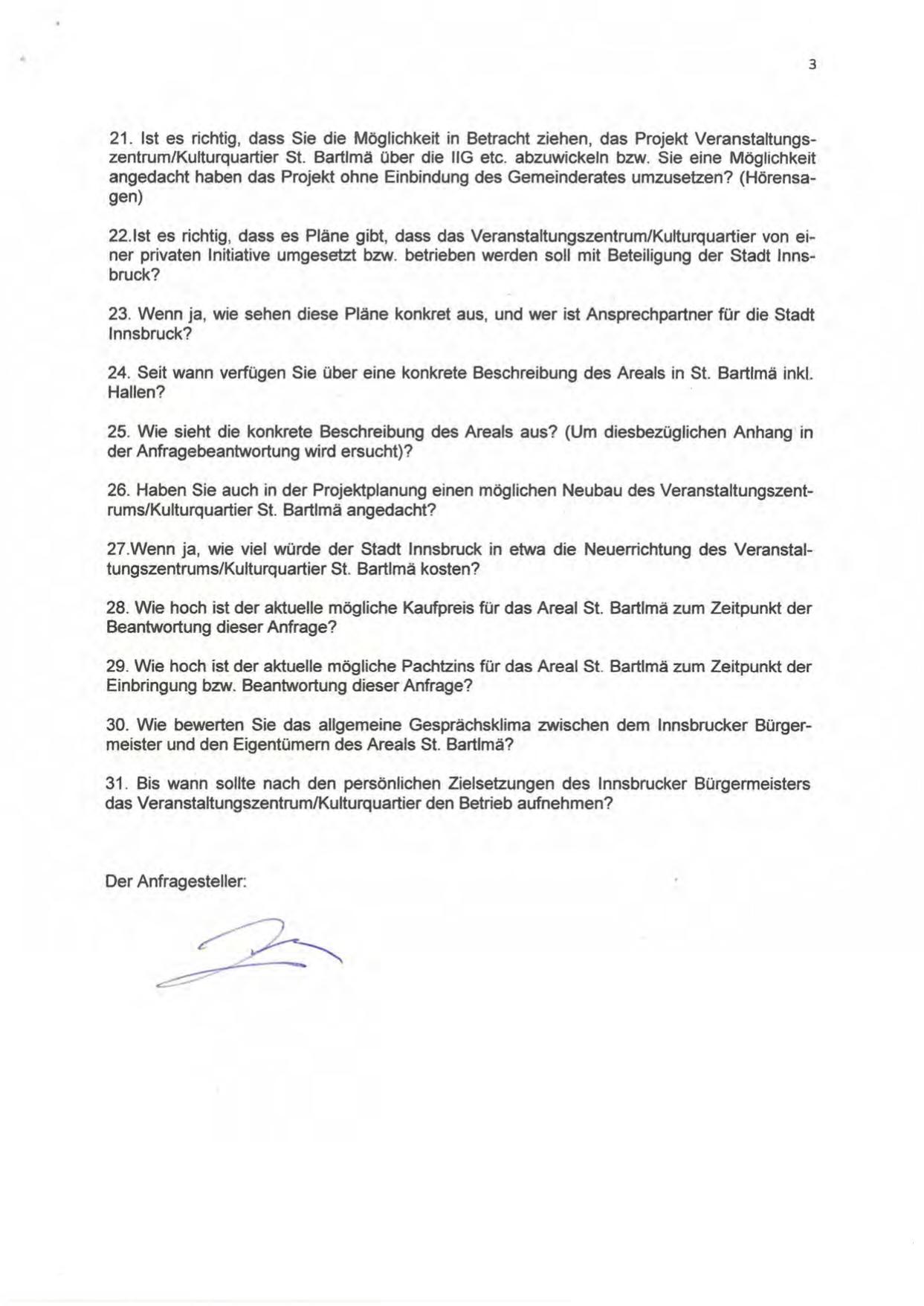 22.lst es richtig, dass es Pläne gibt, dass das Veranstaltungszentrum/Kulturquartier von einer privaten Initiative umgesetzt bzw. betrieben werden soll mit Beteiligung der Stadt Innsbruck?