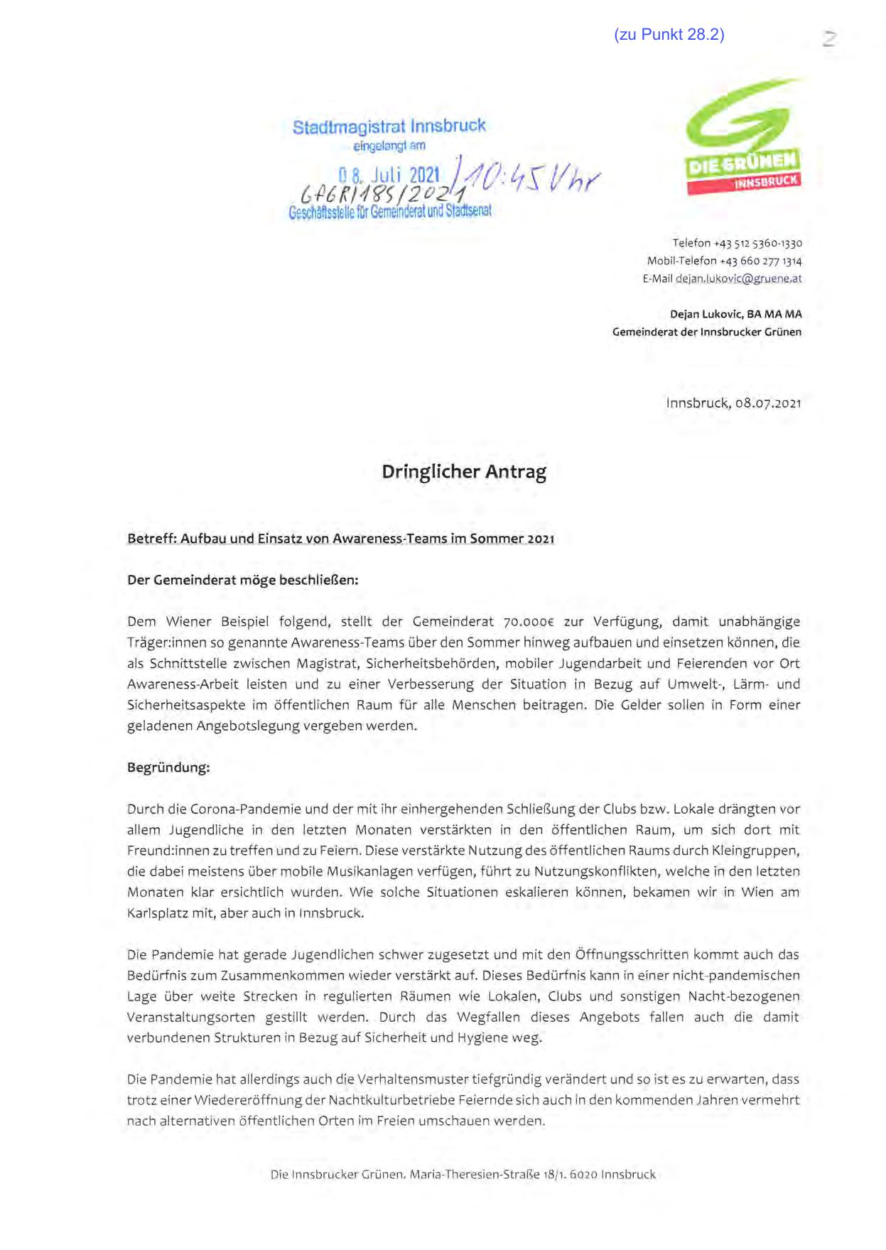 Die lnnsbrucker Grünen. Maria-Theresien-Straße 18/1. 60 20 Innsbruck