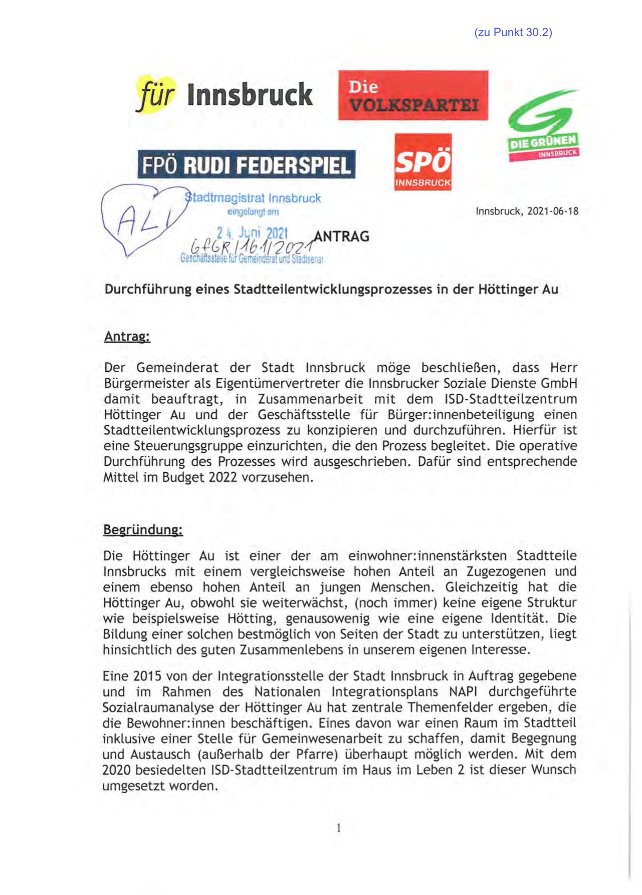 Der Gemeinderat der Stadt Innsbruck möge beschließen, dass Herr