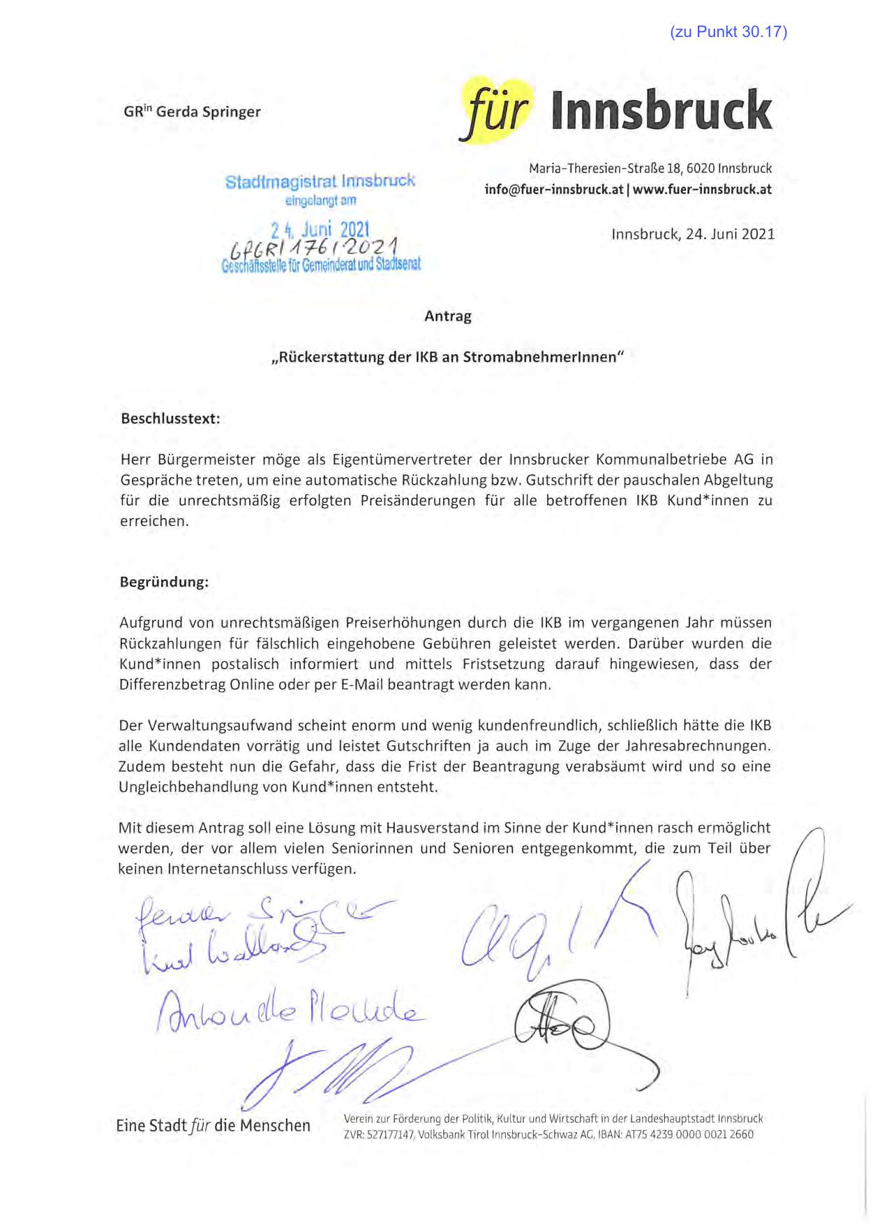 Herr Bürgermeister möge als Eigentümervertreter der lnnsbrucker Kommunalbetriebe AG in