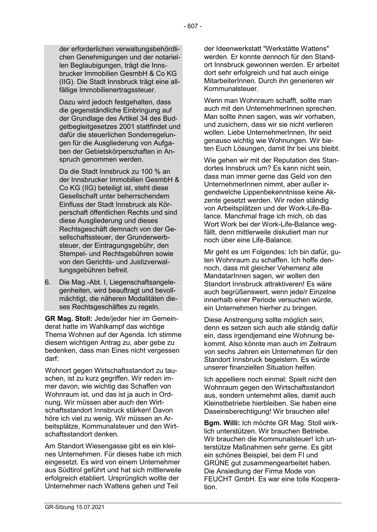 (IIG). Die Stadt Innsbruck trägt eine allfällige Immobilienertragssteuer.