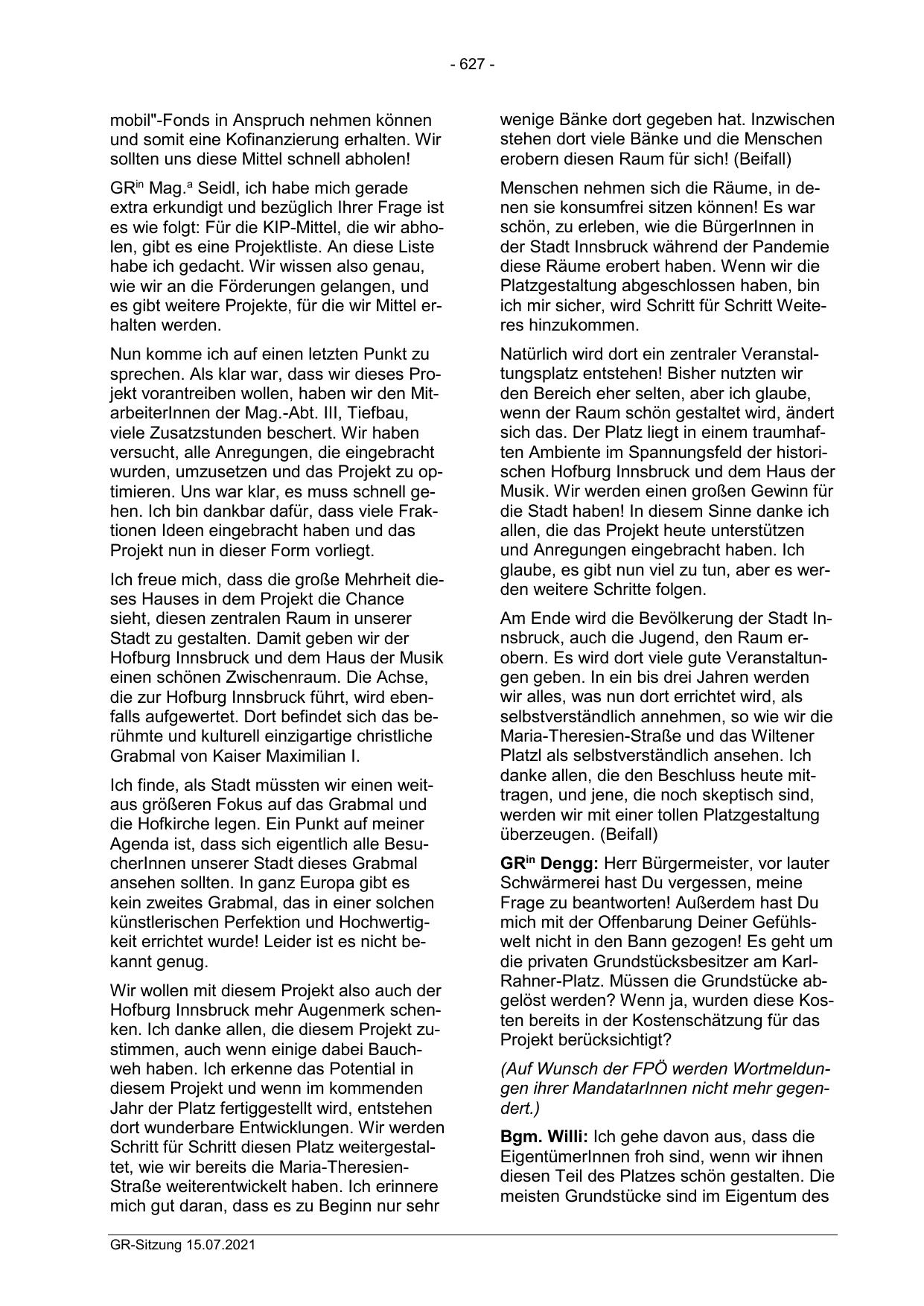 Schritt für Schritt diesen Platz weitergestaltet, wie wir bereits die Maria-TheresienStraße weiterentwickelt haben. Ich erinnere