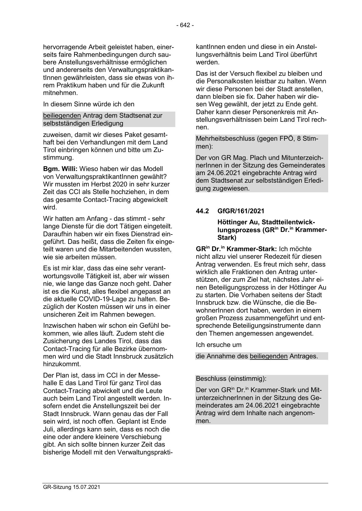 Der von GRin Dr.in Krammer-Stark und MitunterzeichnerInnen in der Sitzung des Gemeinderates am 24.06.2021 eingebrachte