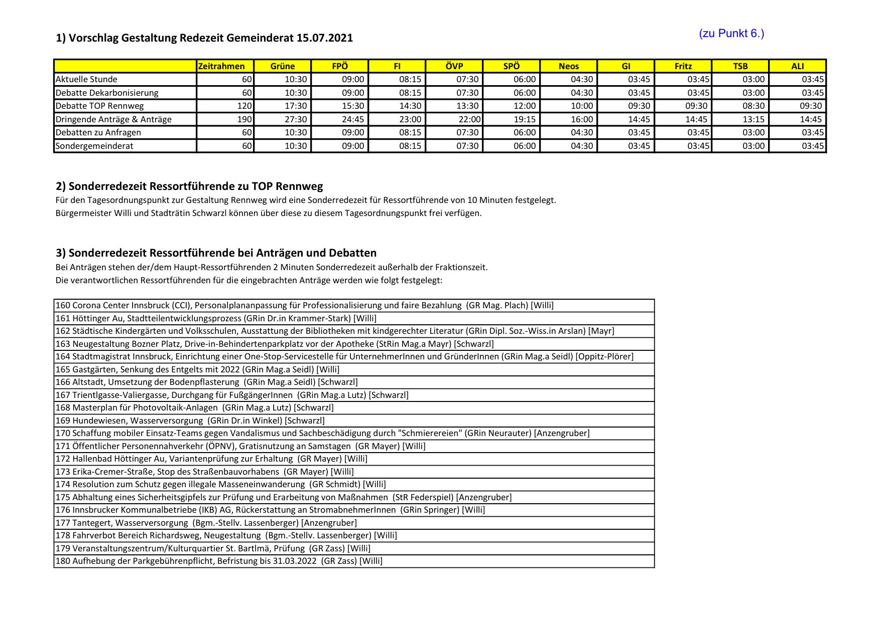 2) Sonderredezeit Ressortführende zu TOP Rennweg