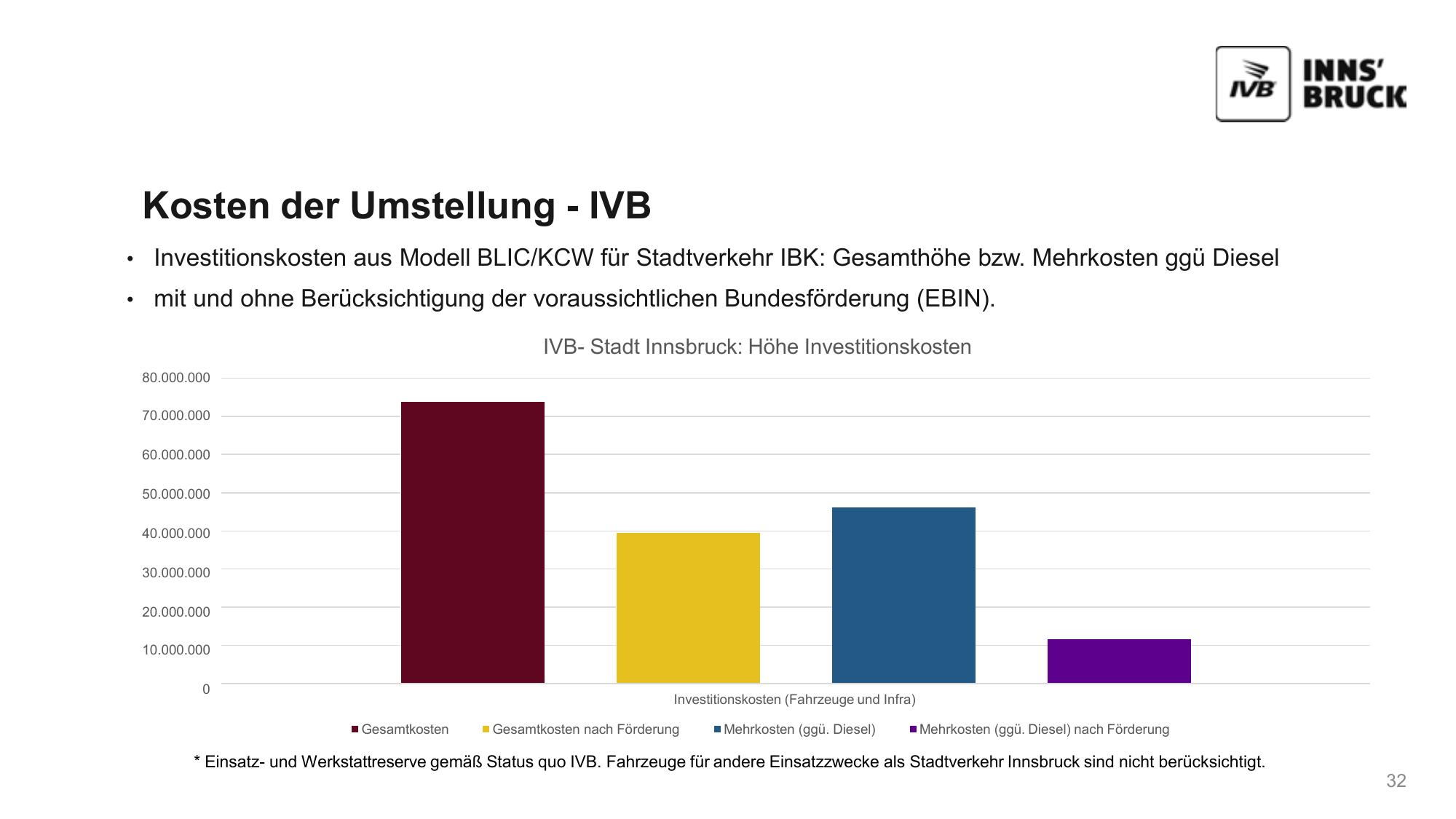 IVB- Stadt Innsbruck: Höhe Investitionskosten