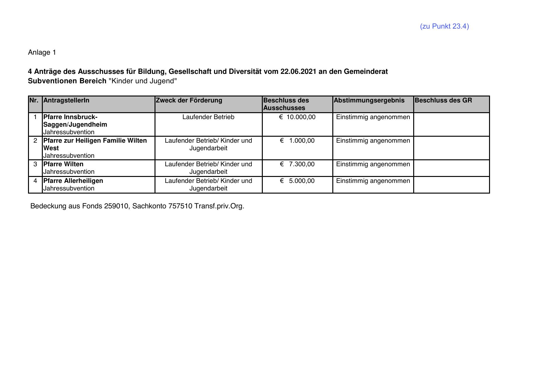 4 Anträge des Ausschusses für Bildung, Gesellschaft und Diversität vom 22.06.2021 an den Gemeinderat