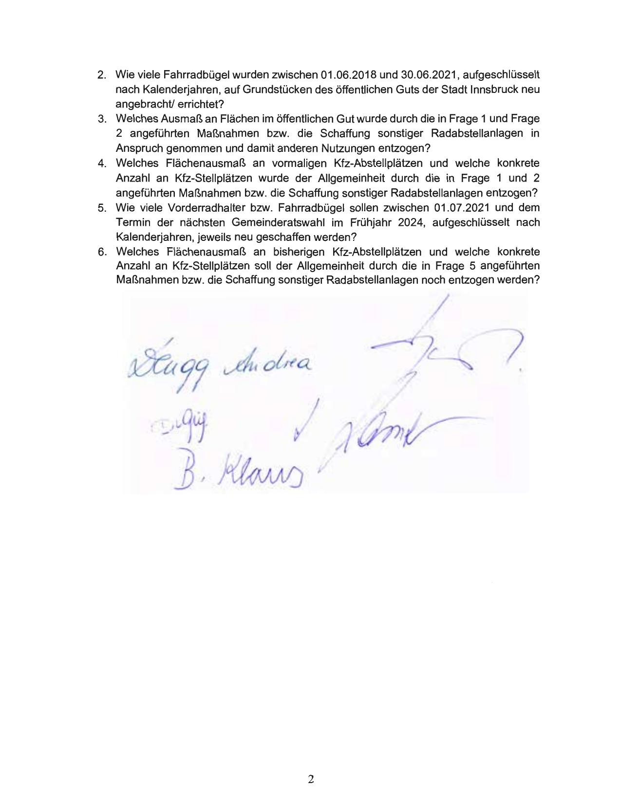 2 angeführten Maßnahmen bzw. die Schaffung sonstiger Radabstellanlagen in