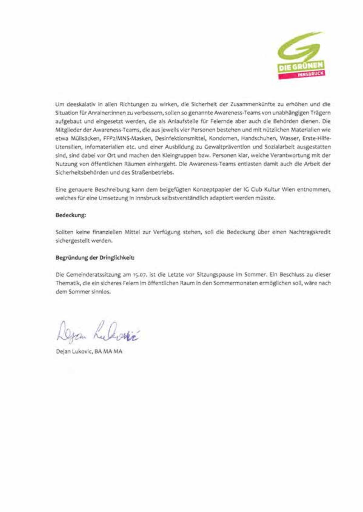 Thematik, die ein sicheres Fe iern im öffentl ichen Raum in den Sommermonaten ermöglichen soll, wäre nach