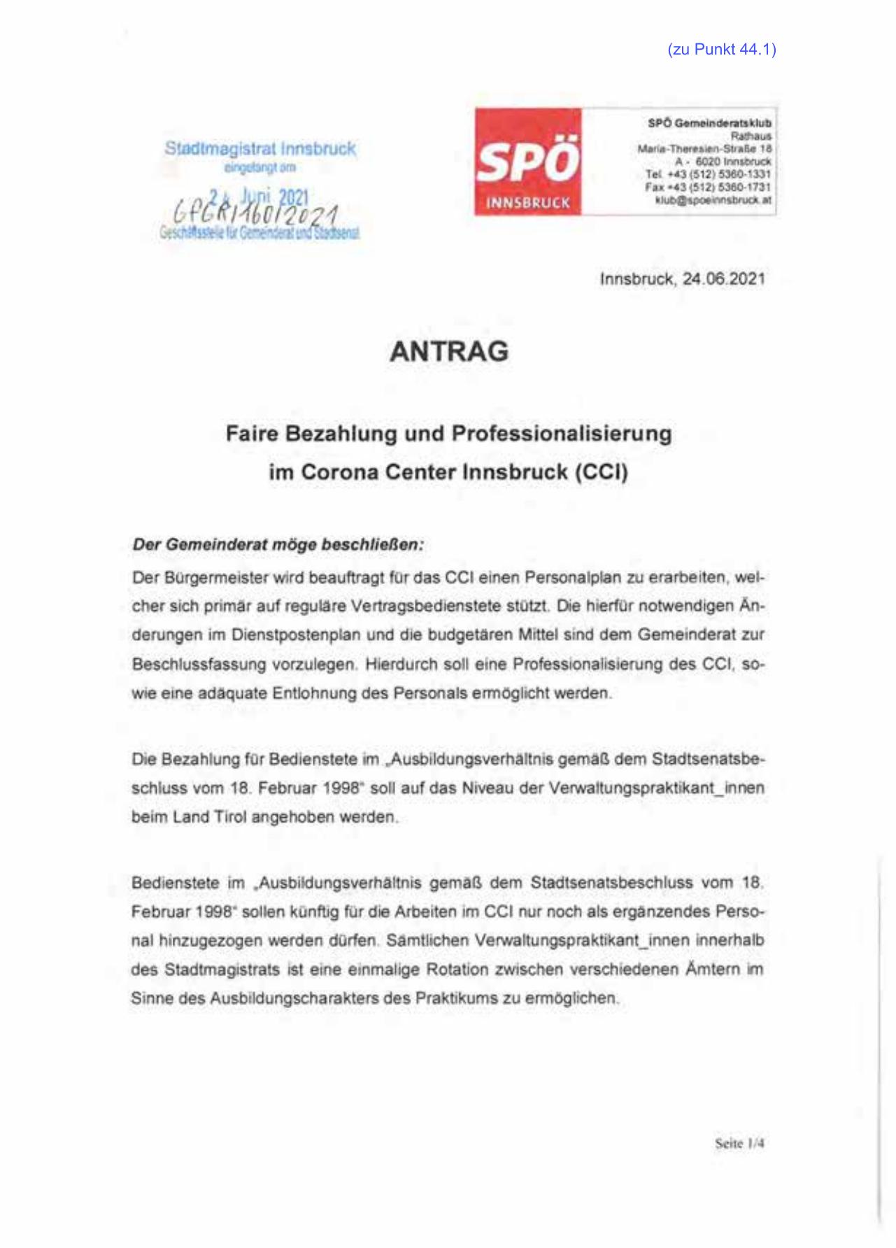 Der Bürgermeister wird beauftragt für das CCI einen Personalplan zu erarbeiten , welcher sich primär auf reguläre Vertragsbedienstete stützt. Die hierfür notwendigen Änderungen im Dienstpostenplan und die budgetären Mittel sind dem Gemeinderat zur