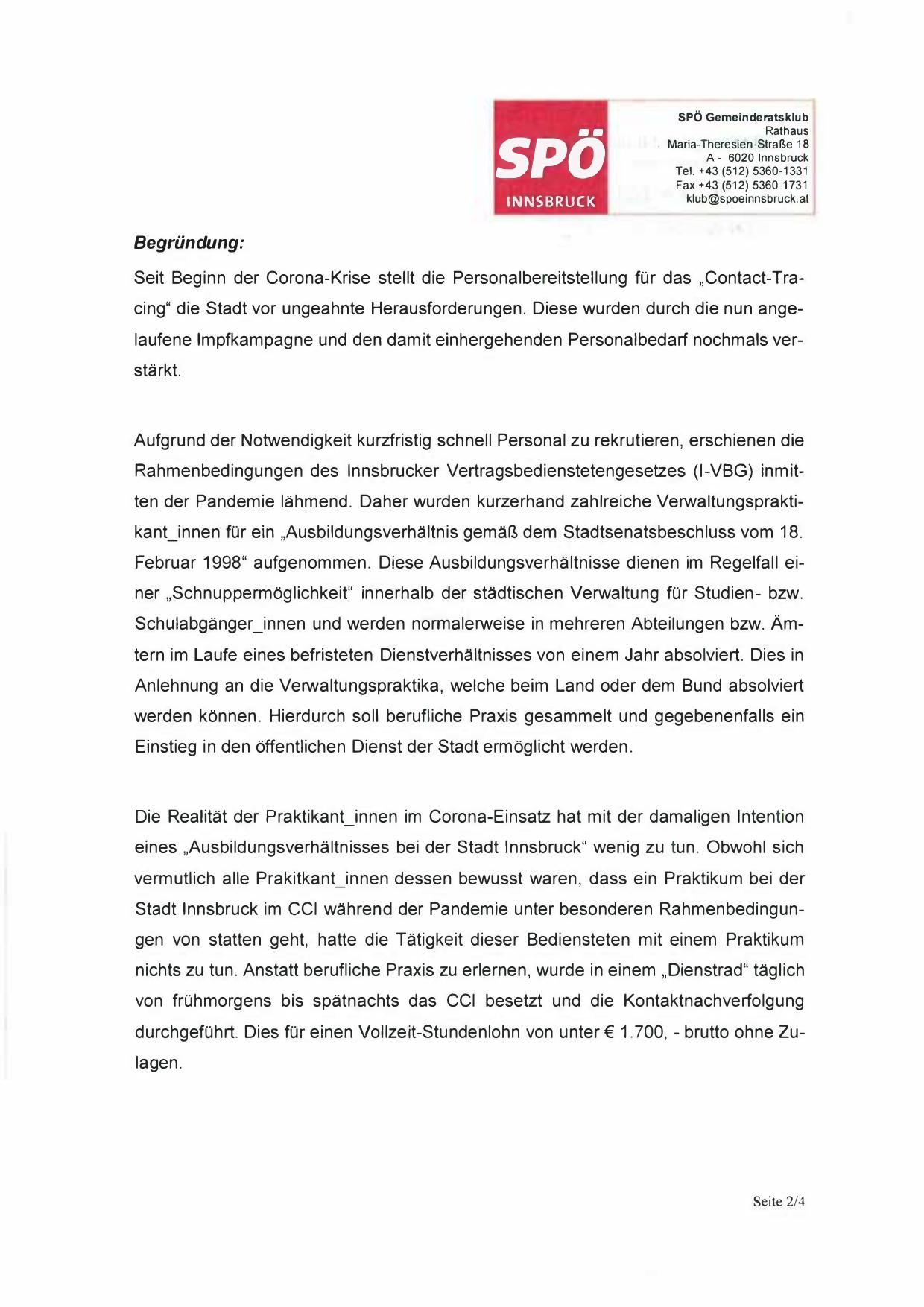 eines „Ausbildungsverhältnisses bei der Stadt Innsbruck" wenig zu tun. Obwohl sich
