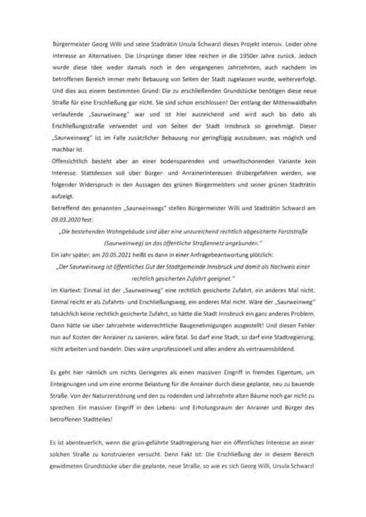 gewidmeten Grundstücke über die geplante, neue Straße, so wie es sich Georg Willi, Ursula Schwarz!