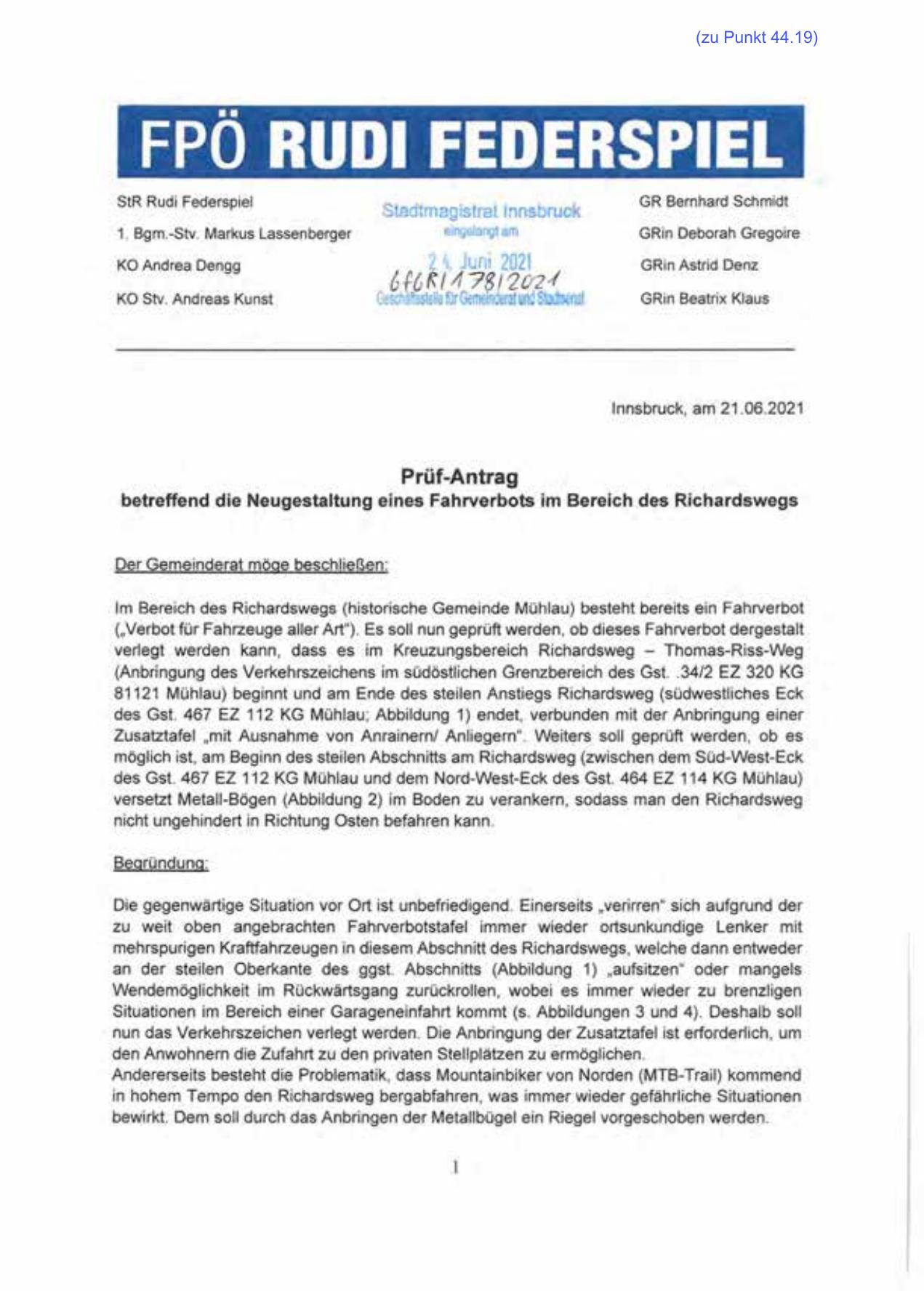 Im Bereich des Richardswegs (historische Gemeinde Mühlau) besteht bereits ein Fahrverbot