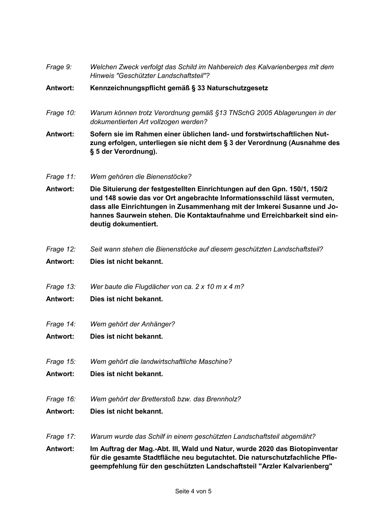 für die gesamte Stadtfläche neu begutachtet. Die naturschutzfachliche Pflegeempfehlung für den geschützten Landschaftsteil "Arzler Kalvarienberg"