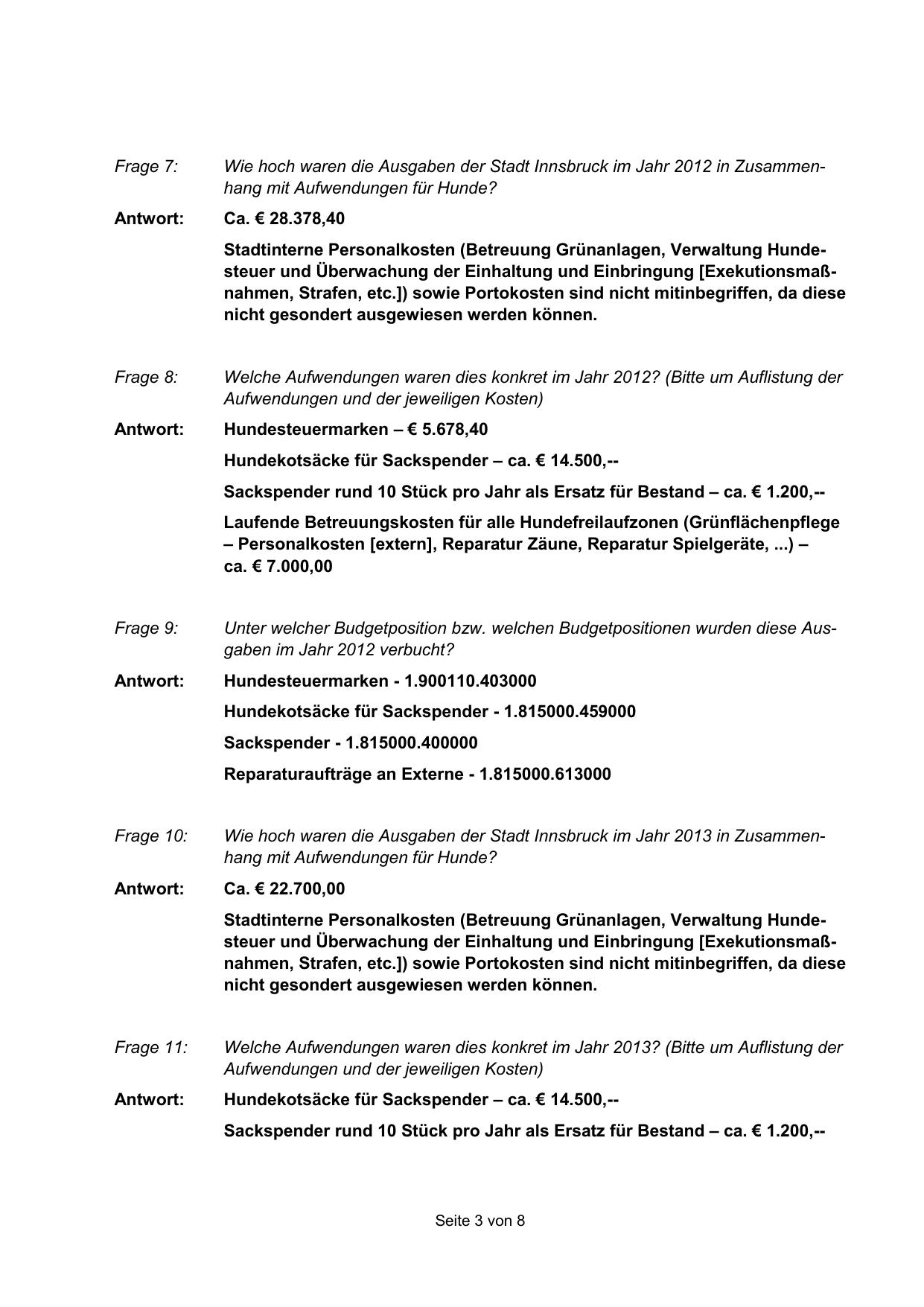 Stadtinterne Personalkosten (Betreuung Grünanlagen, Verwaltung Hundesteuer und Überwachung der Einhaltung und Einbringung [Exekutionsmaßnahmen, Strafen, etc.]) sowie Portokosten sind nicht mitinbegriffen, da diese