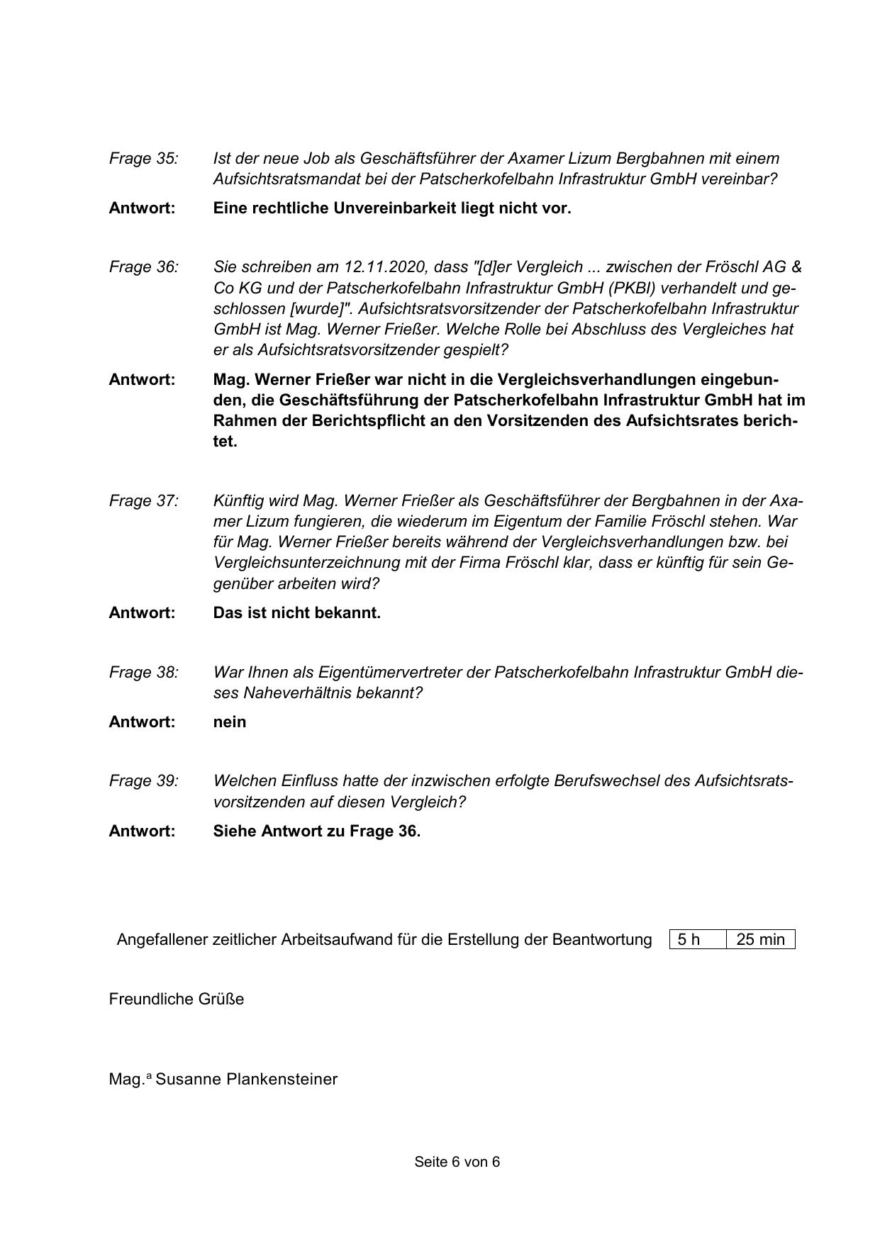 Aufsichtsratsmandat bei der Patscherkofelbahn Infrastruktur GmbH vereinbar?
