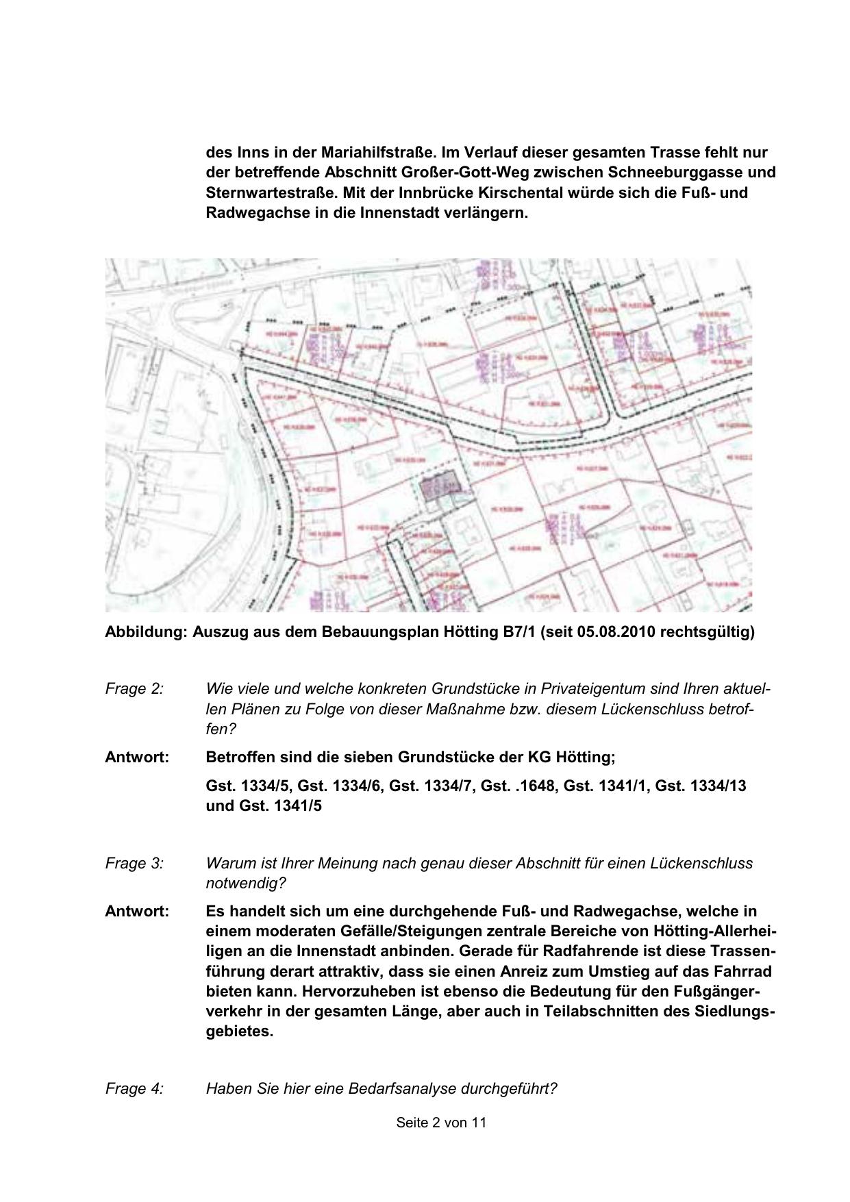 Abbildung: Auszug aus dem Bebauungsplan Hötting B7/1 (seit 05.08.2010 rechtsgültig)