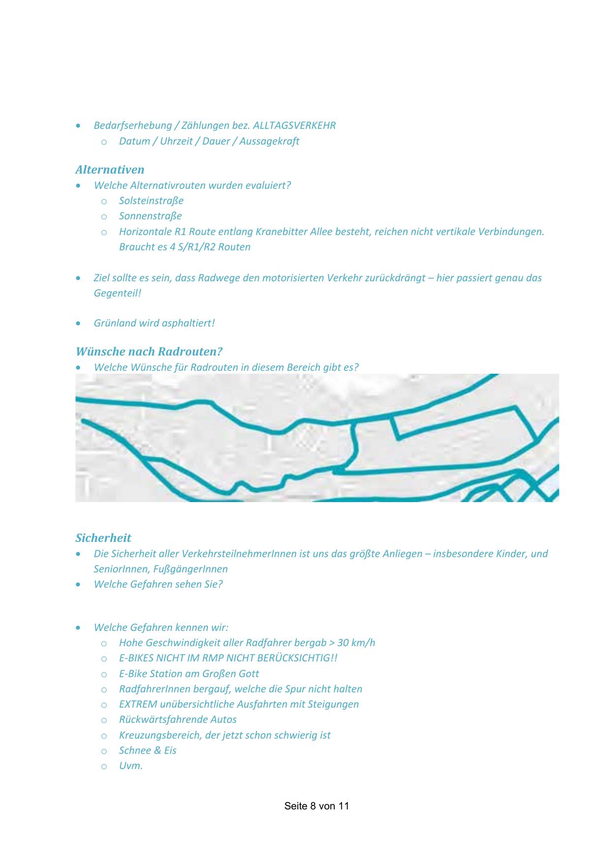 Welche Wünsche für Radrouten in diesem Bereich gibt es?