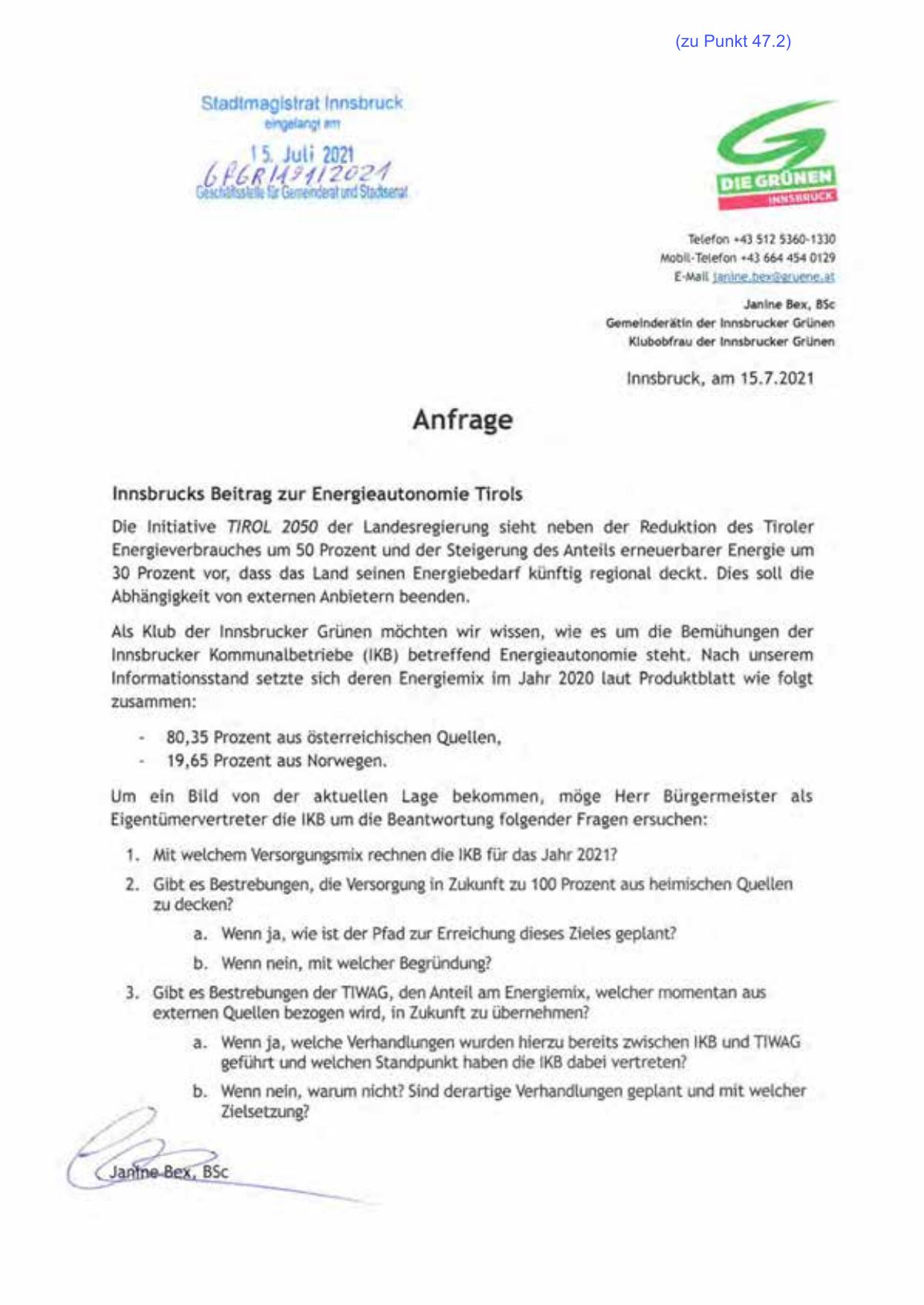 Als Klub der lnnsbrucker Grünen möchten wir wissen, wie es um die Bemühungen der