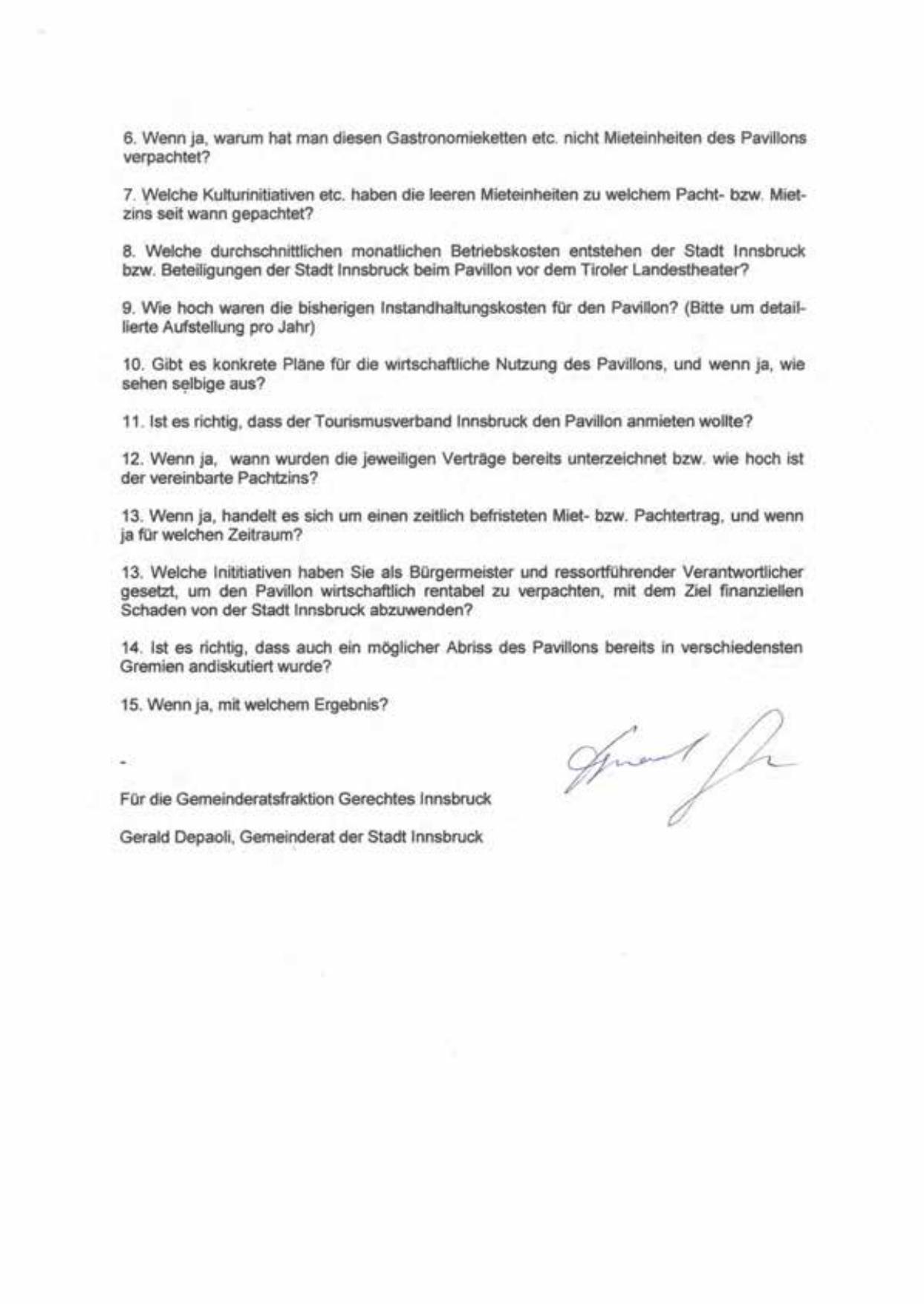 11 . Ist es richtig, dass der Tourismusverband Innsbruck den pavillon anmieten wollte?