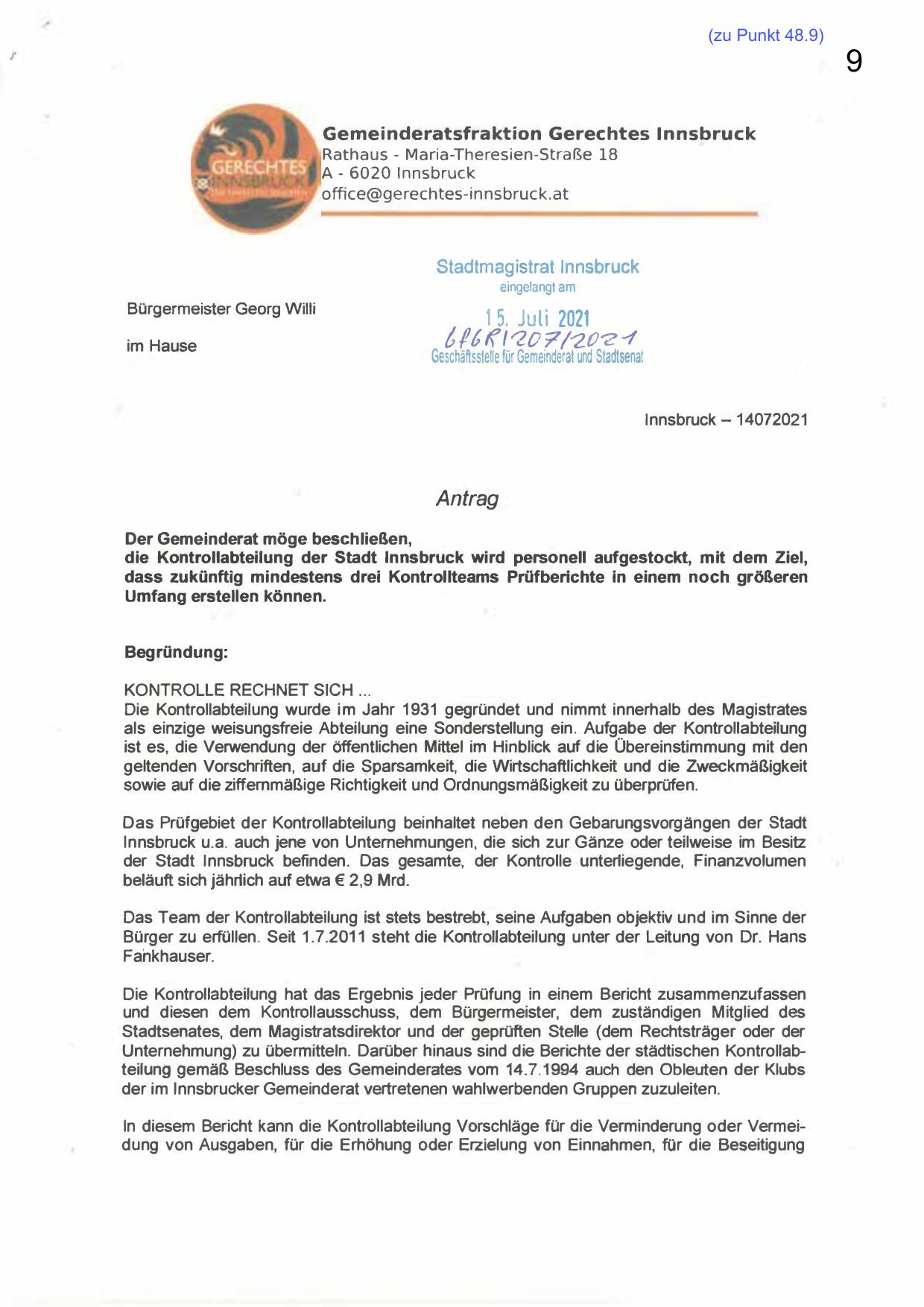 G e m e i nderatsfra ktion Gerec htes I n n s b ru c k