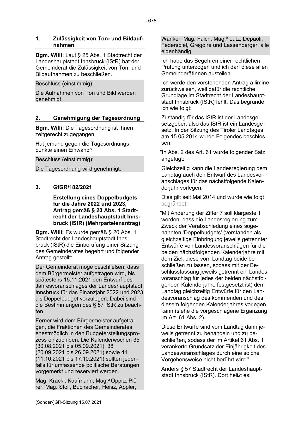 Bgm. Willi: Laut § 25 Abs. 1 Stadtrecht der