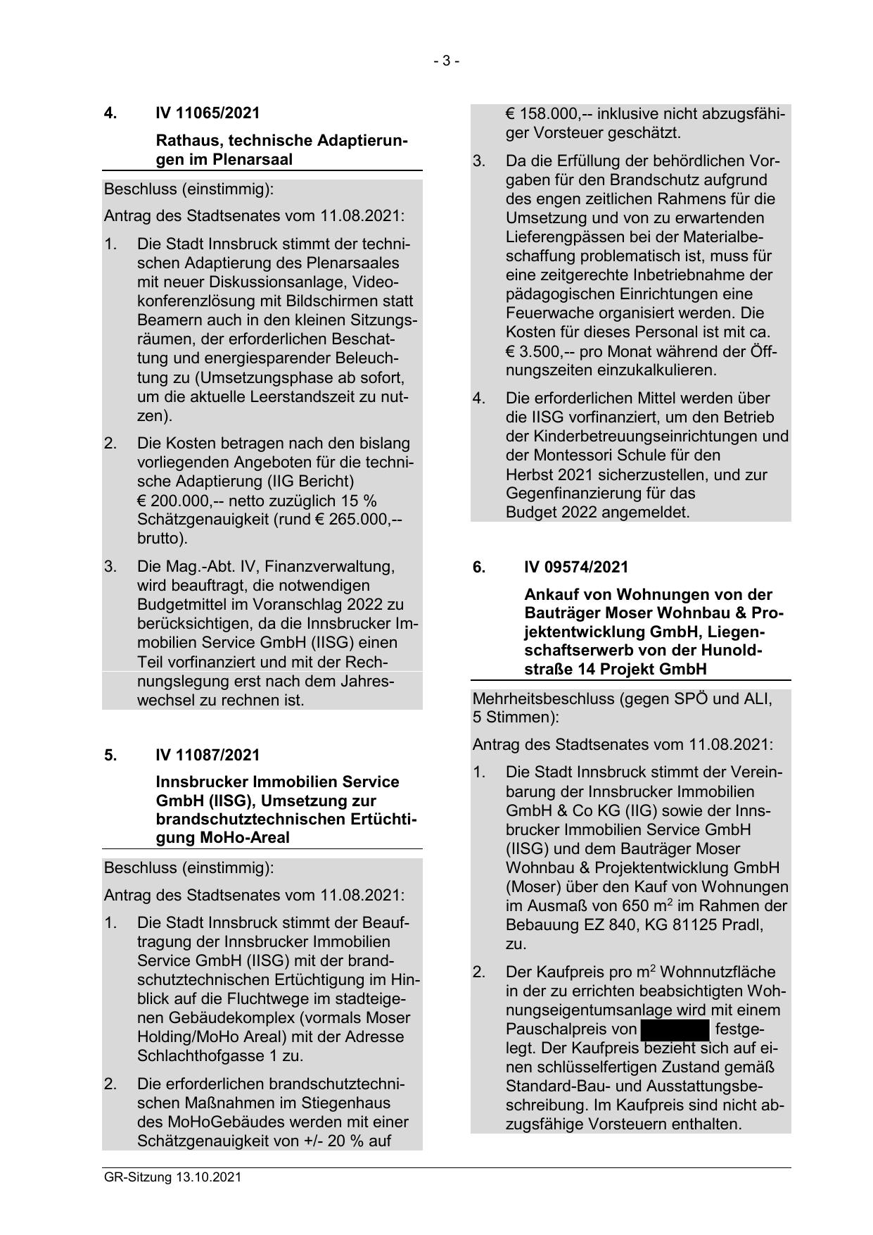 Mehrheitsbeschluss (gegen SPÖ und ALI,