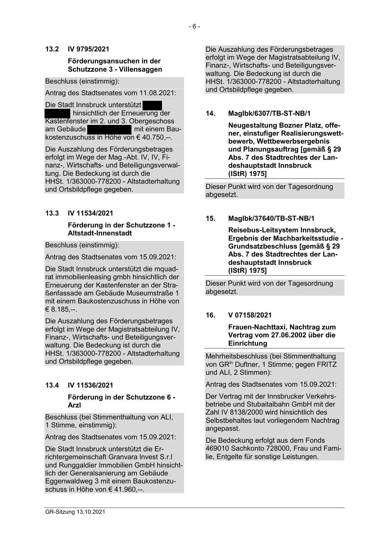 Abs. 7 des Stadtrechtes der Landeshauptstadt Innsbruck