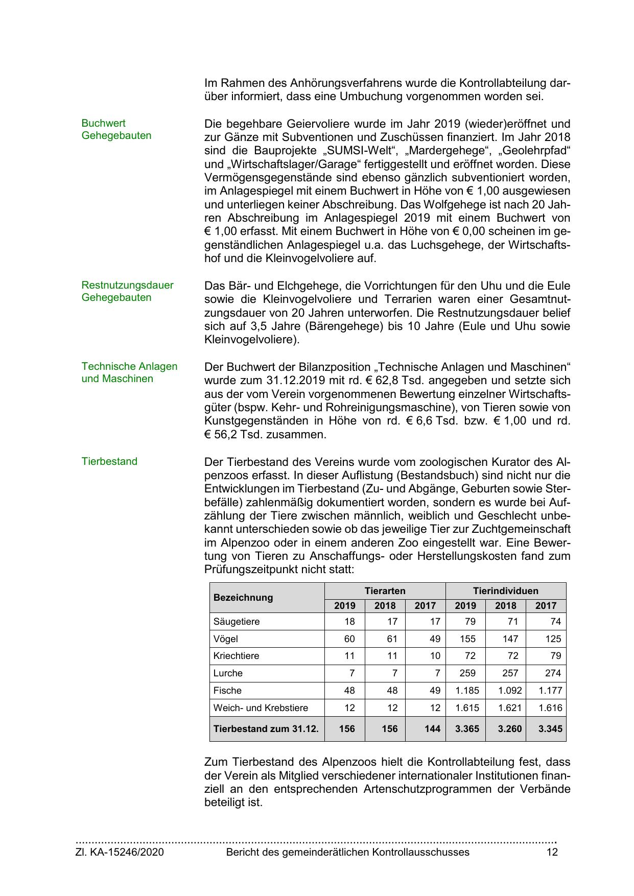 im Alpenzoo oder in einem anderen Zoo eingestellt war. Eine Bewertung von Tieren zu Anschaffungs- oder Herstellungskosten fand zum
