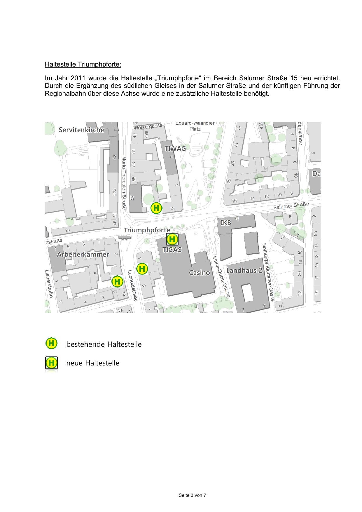 Im Jahr 2011 wurde die Haltestelle „Triumphpforte“ im Bereich Salurner Straße 15 neu errichtet.