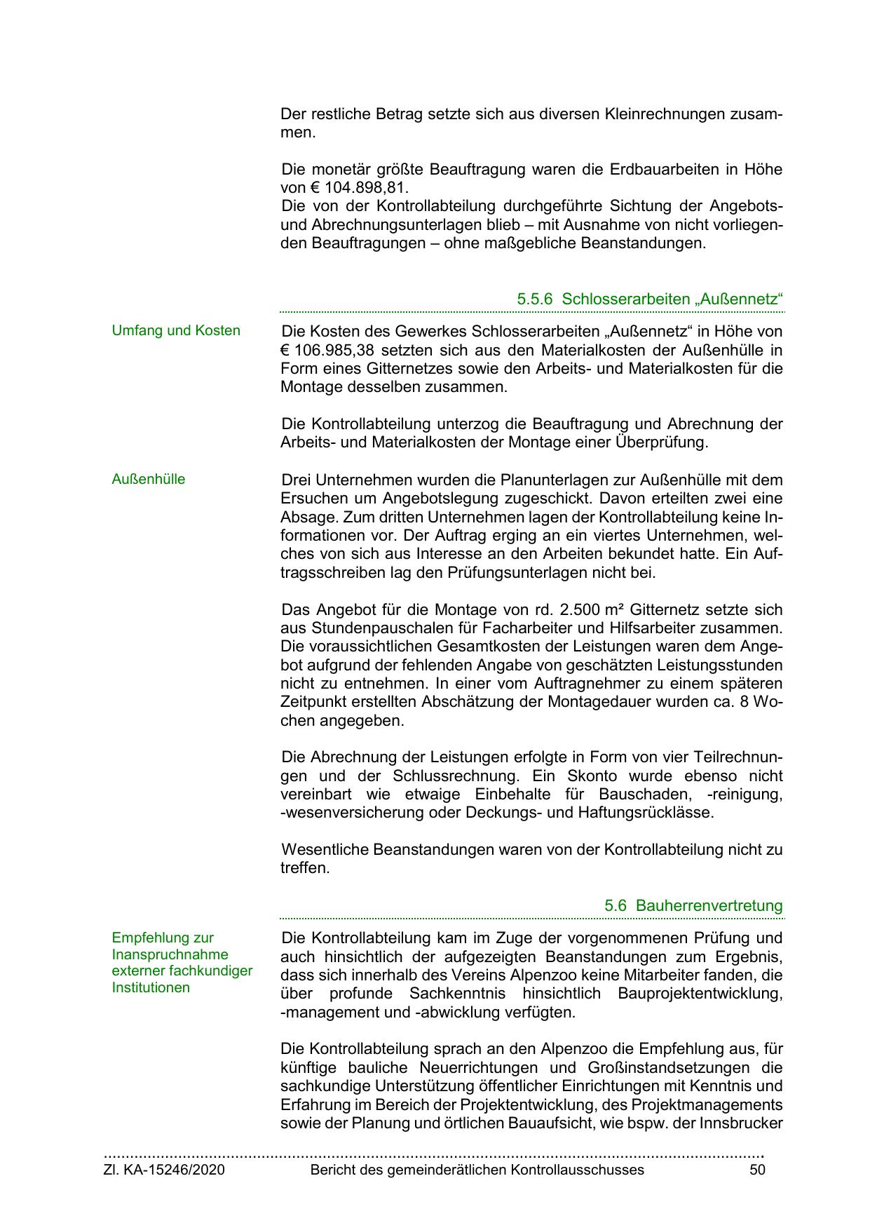 Die von der Kontrollabteilung durchgeführte Sichtung der Angebotsund Abrechnungsunterlagen blieb – mit Ausnahme von nicht vorliegenden Beauftragungen – ohne maßgebliche Beanstandungen.