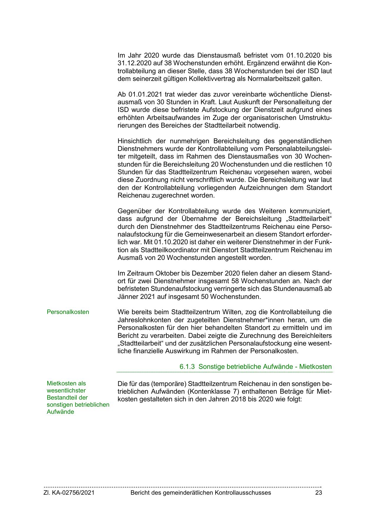 durch den Dienstnehmer des Stadtteilzentrums Reichenau eine Personalaufstockung für die Gemeinwesenarbeit an diesem Standort erforderlich war. Mit 01.10.2020 ist daher ein weiterer Dienstnehmer in der Funktion als Stadtteilkoordinator mit Dienstort Stadtteilzentrum Reichenau im