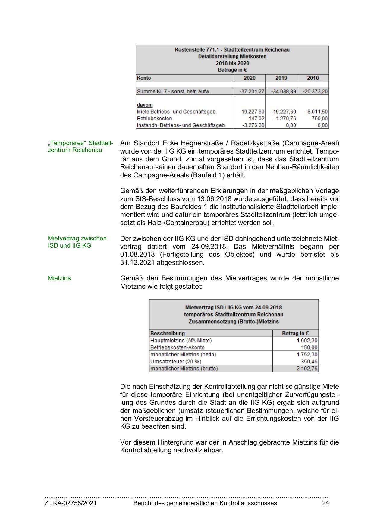 Die nach Einschätzung der Kontrollabteilung gar nicht so günstige Miete