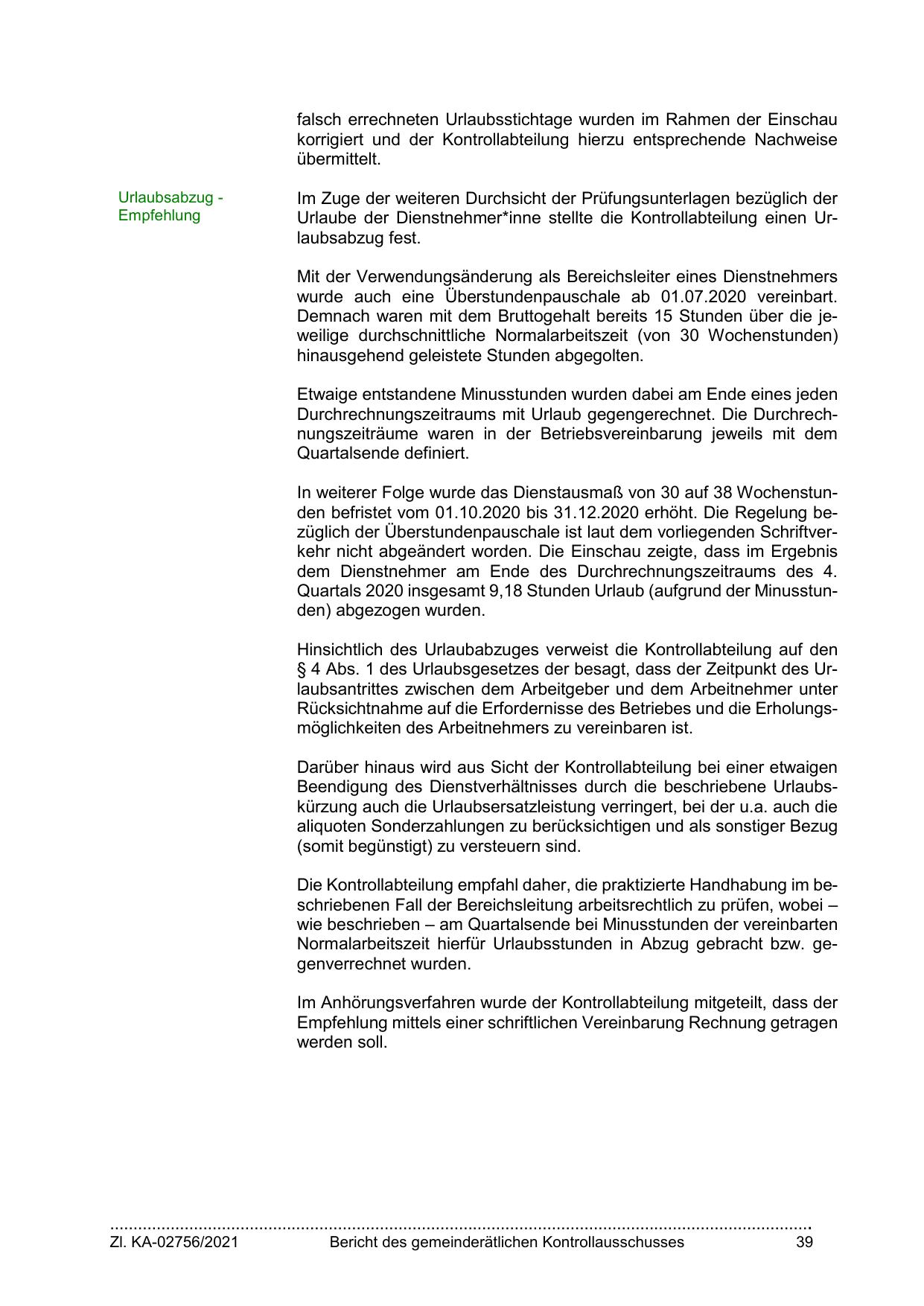 Urlaube der Dienstnehmer*inne stellte die Kontrollabteilung einen Urlaubsabzug fest.