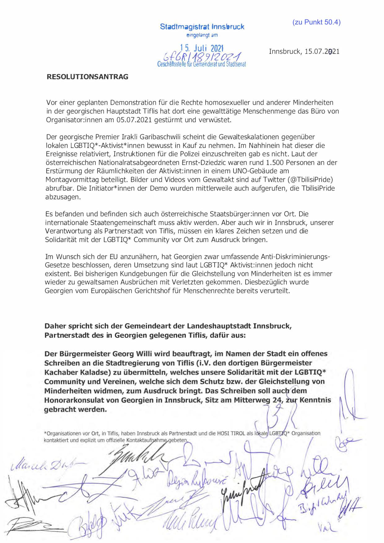 Da her spricht sich der Gemeindeart der Landeshauptstadt Innsbruck,