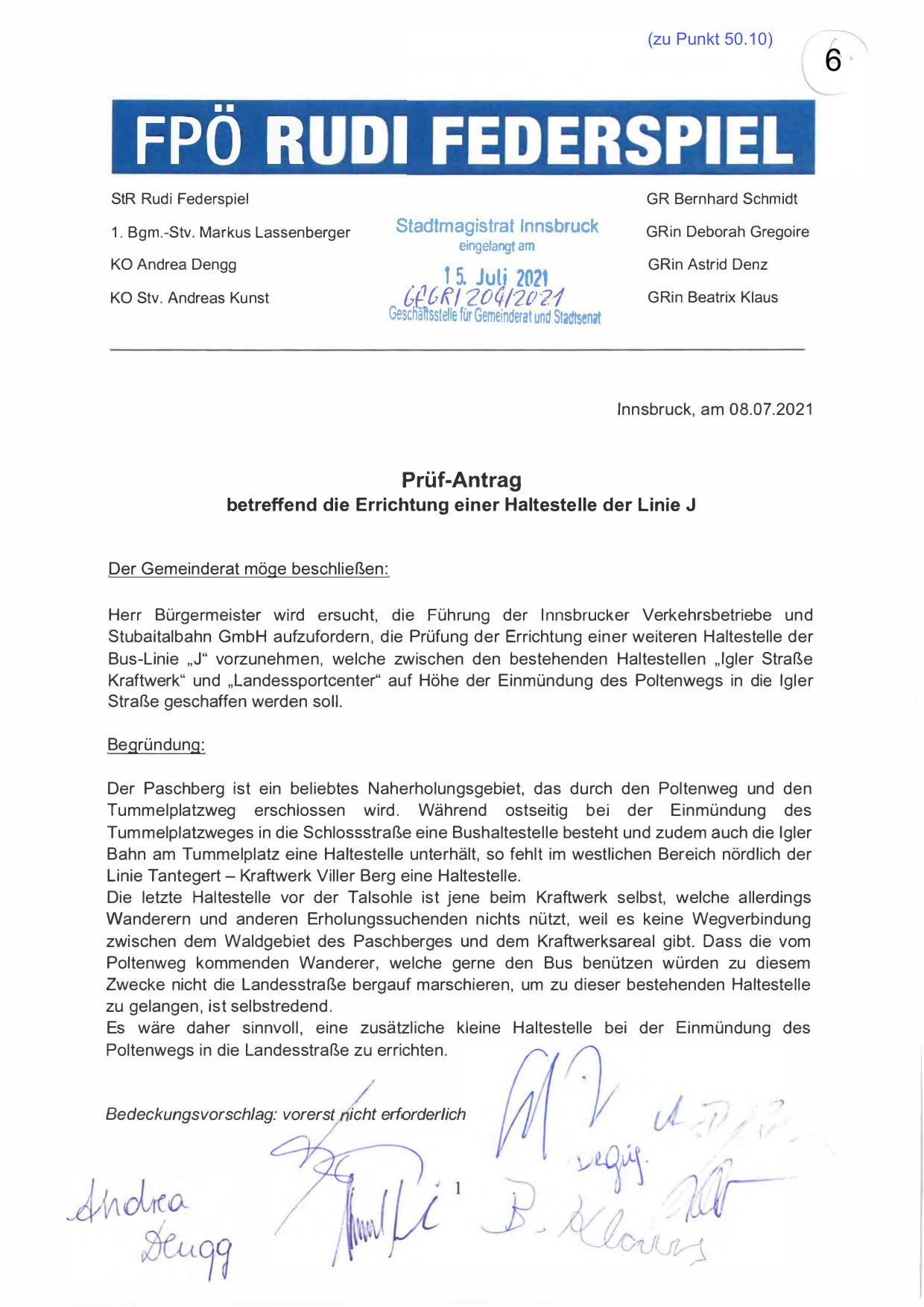 Stubaitalbahn GmbH a ufzufordern , d ie Prüfu ng d e r Errichtung e i n e r weiteren Haltestelle der