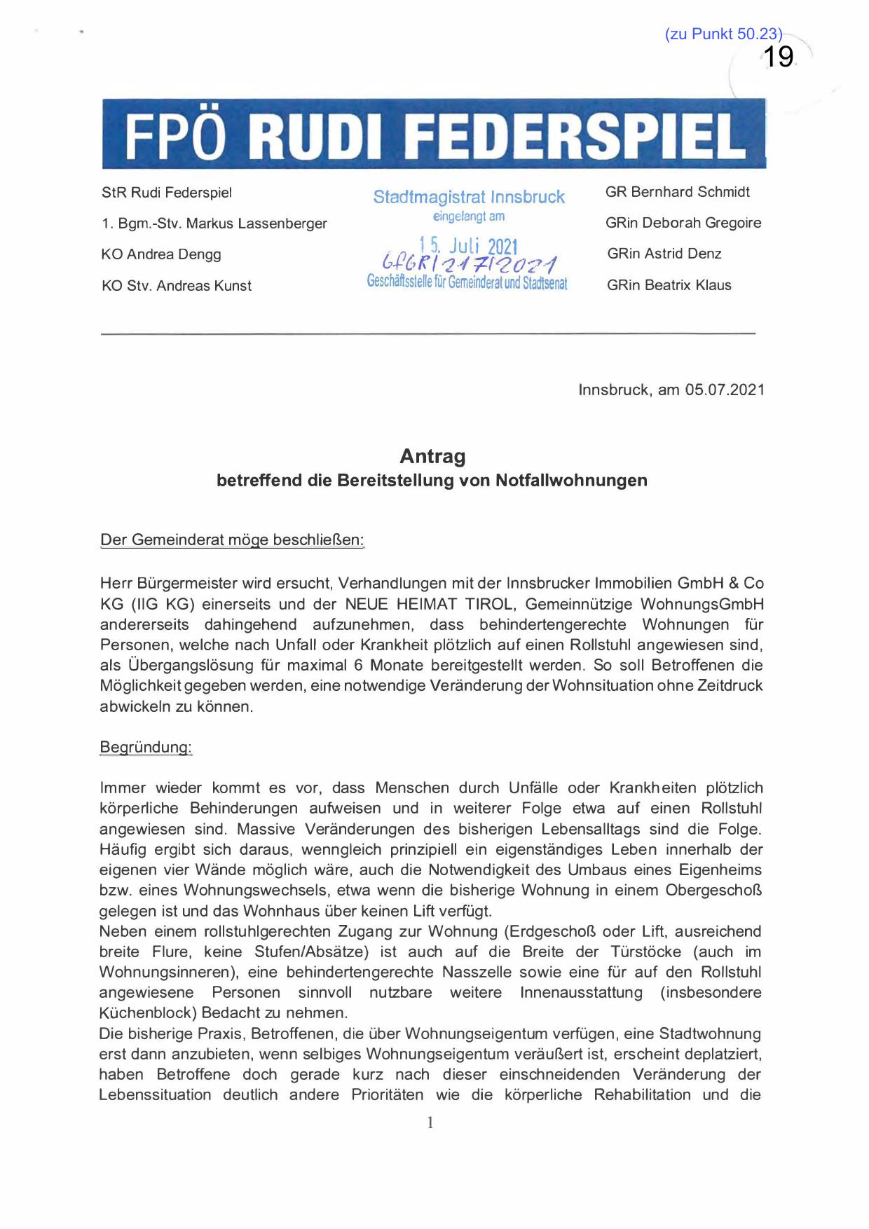 Herr Bürgermeiste r wird ersucht, Verhand lu ngen m it der l n nsbrucke r I m mobil ien G m b H & Co