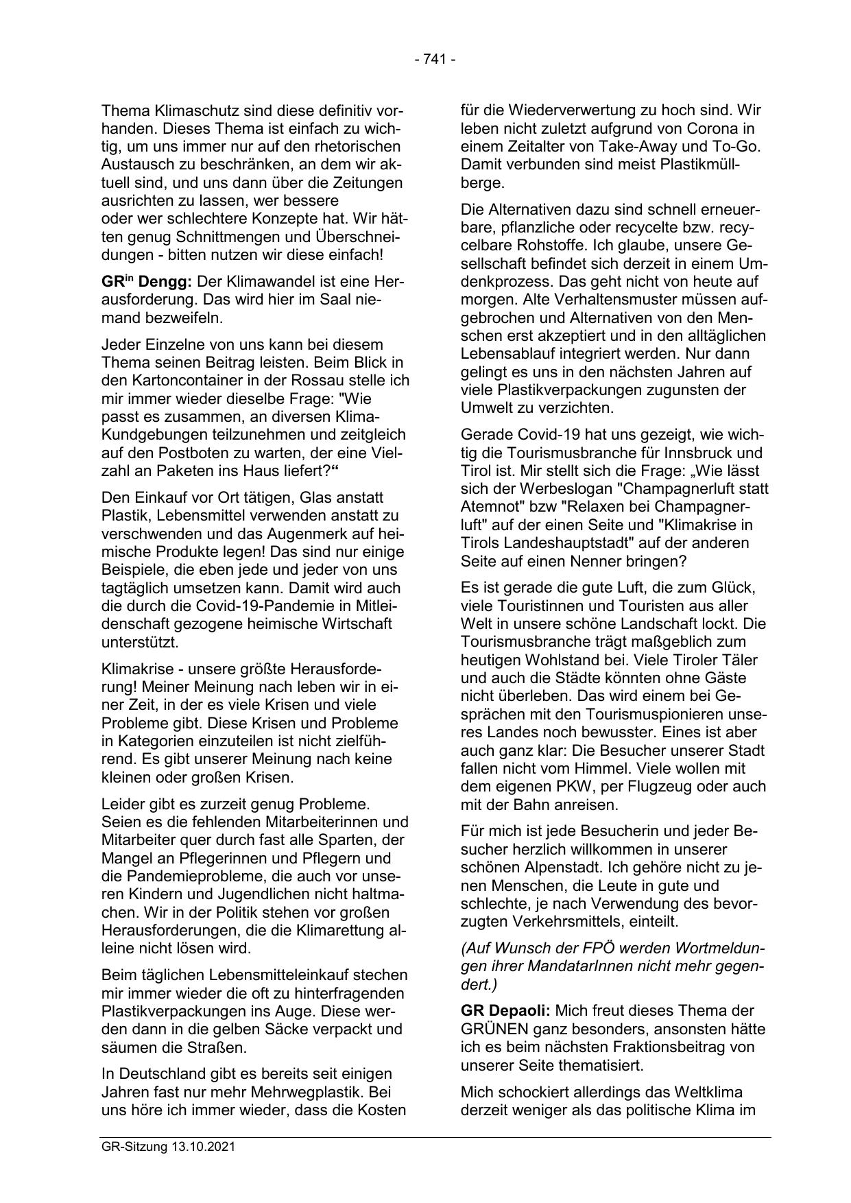 GRin Dengg: Der Klimawandel ist eine Herausforderung. Das wird hier im Saal niemand bezweifeln.