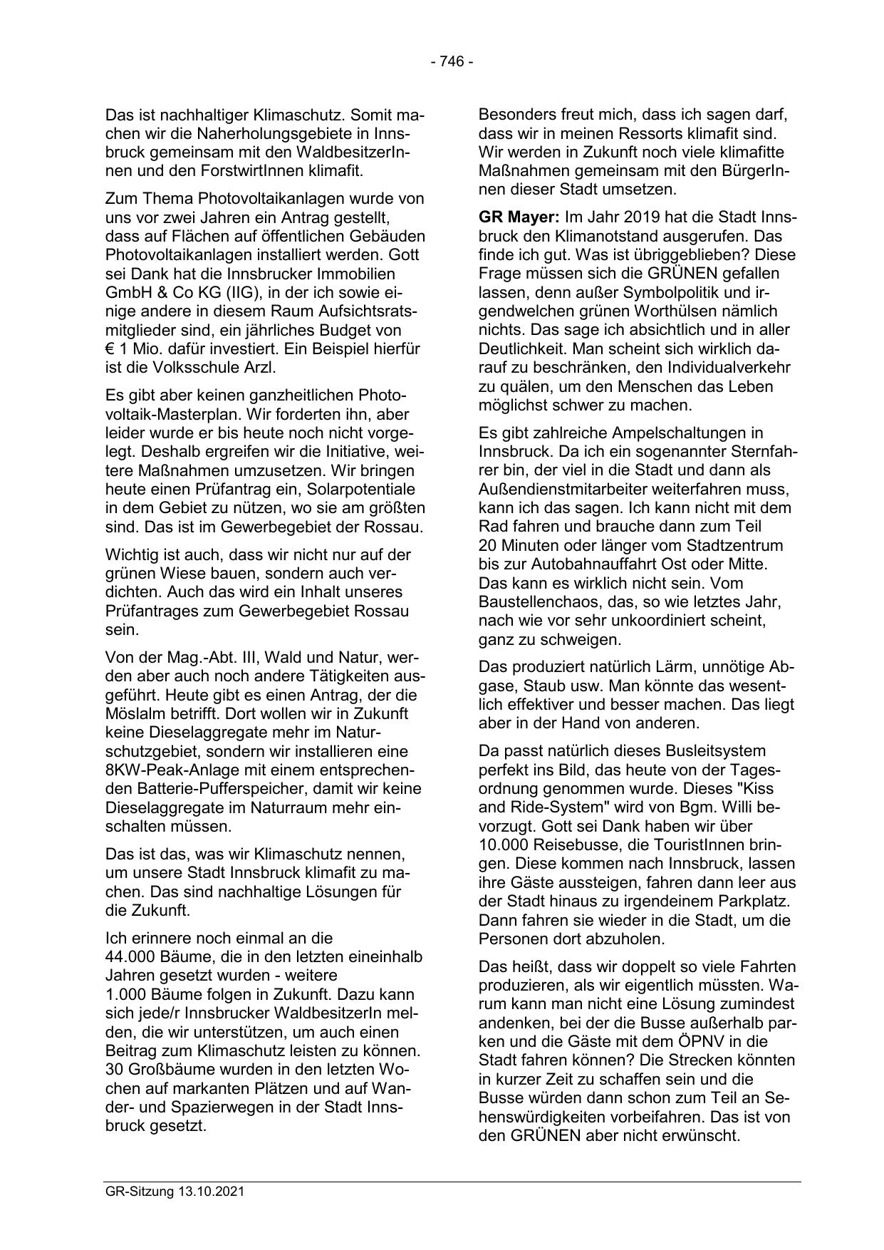 GR Mayer: Im Jahr 2019 hat die Stadt Innsbruck den Klimanotstand ausgerufen. Das