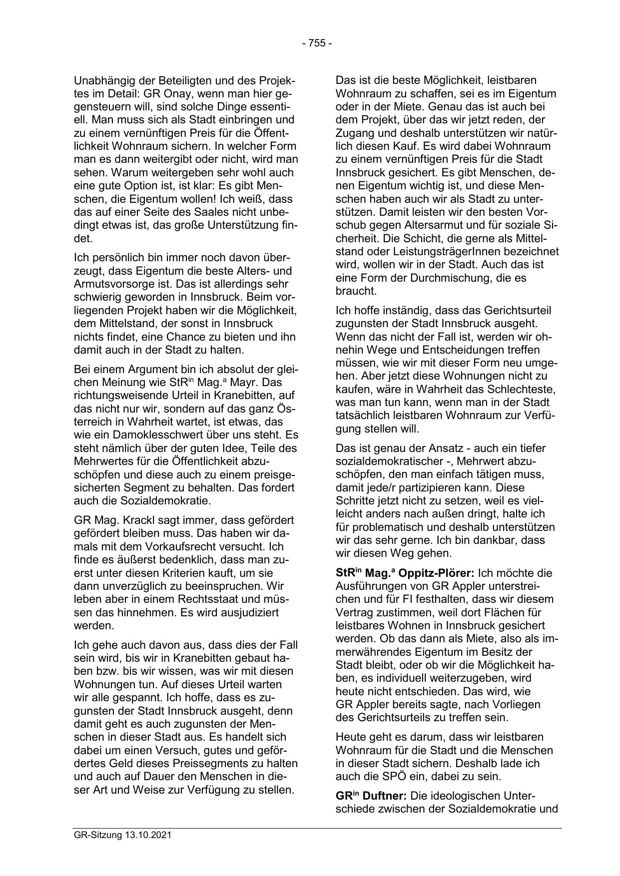 Innsbruck gesichert. Es gibt Menschen, denen Eigentum wichtig ist, und diese Menschen haben auch wir als Stadt zu unterstützen. Damit leisten wir den besten Vorschub gegen Altersarmut und für soziale Sicherheit. Die Schicht, die gerne als Mittelstand oder LeistungsträgerInnen bezeichnet