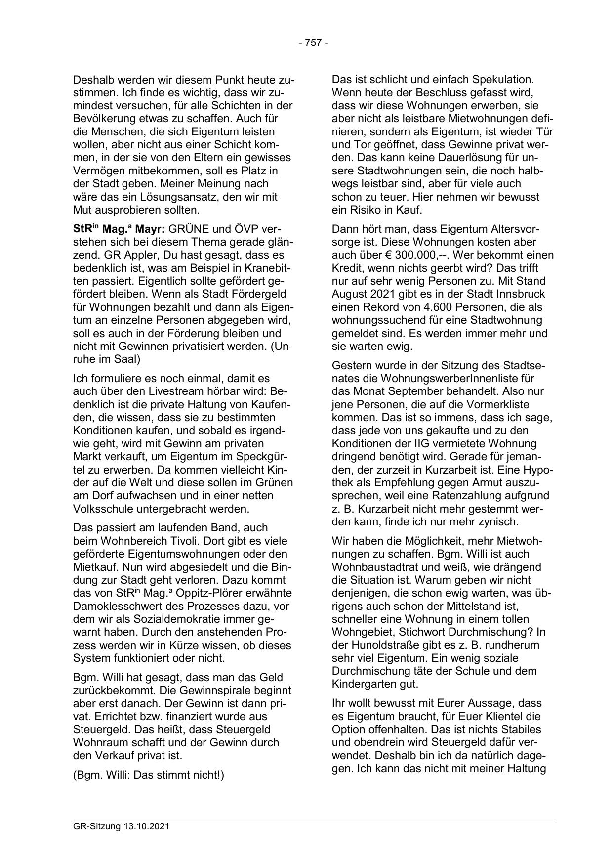 bedenklich ist, was am Beispiel in Kranebitten passiert. Eigentlich sollte gefördert gefördert bleiben. Wenn als Stadt Fördergeld