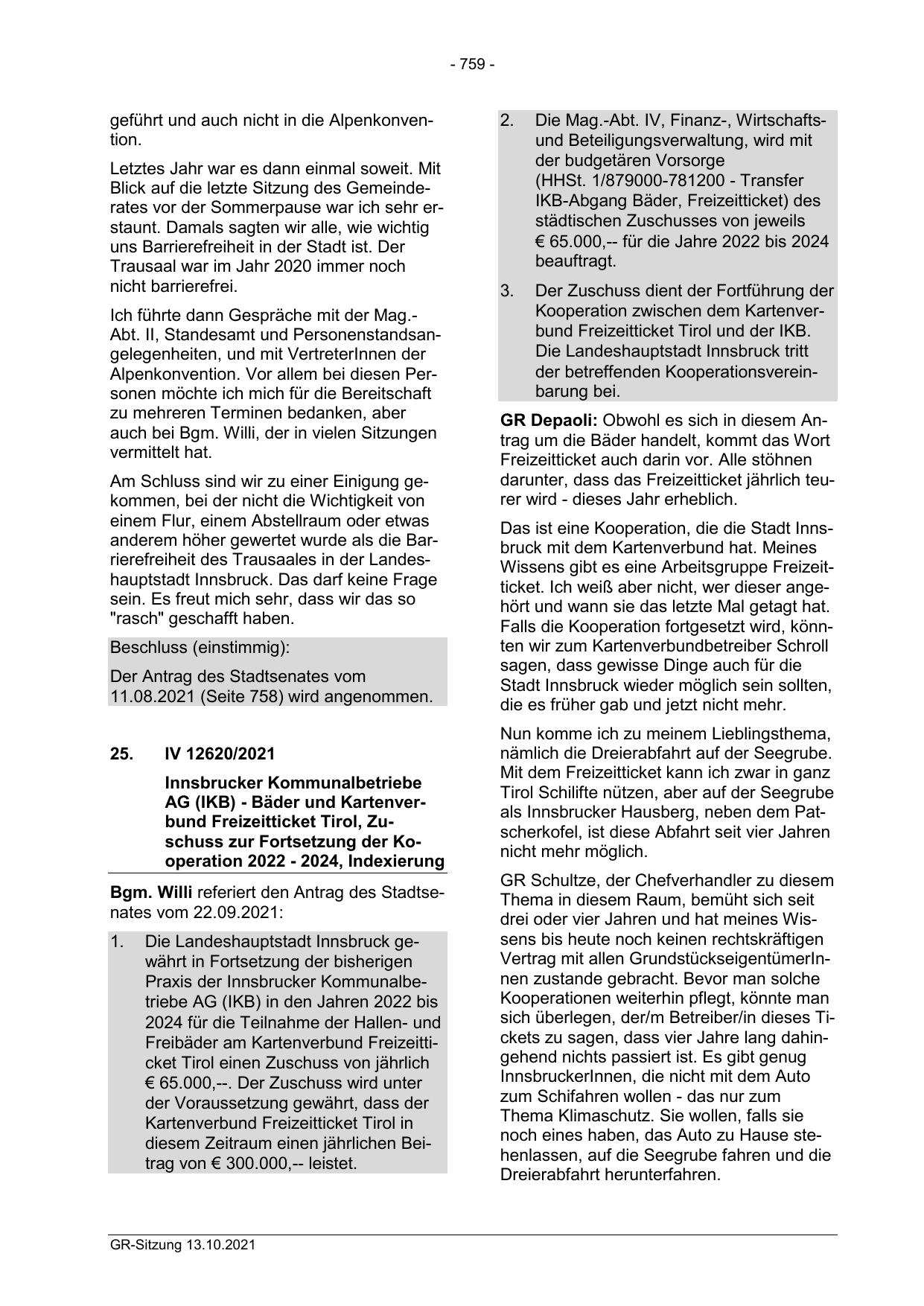 GR Depaoli: Obwohl es sich in diesem Antrag um die Bäder handelt, kommt das Wort