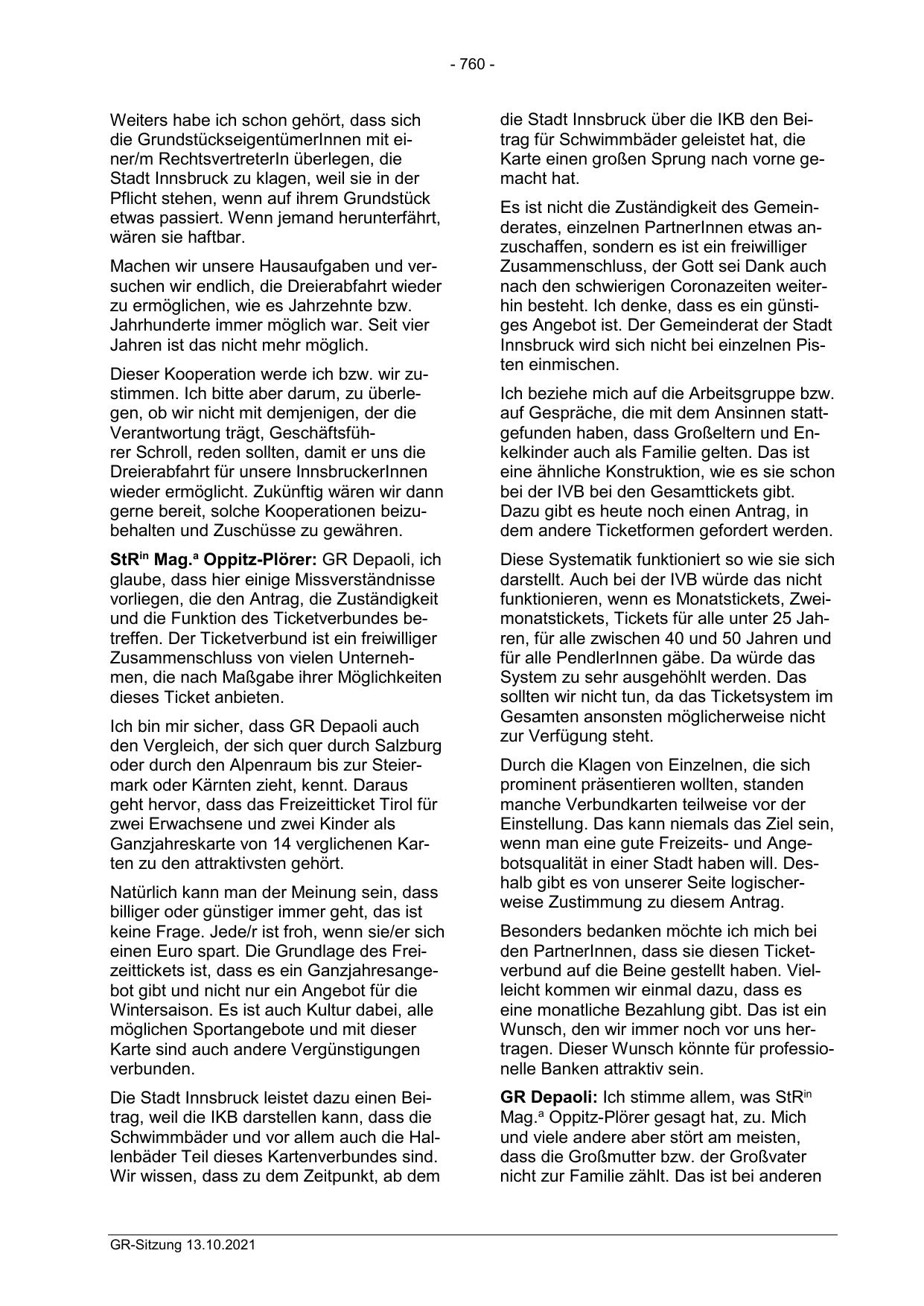 StRin Mag.a Oppitz-Plörer: GR Depaoli, ich