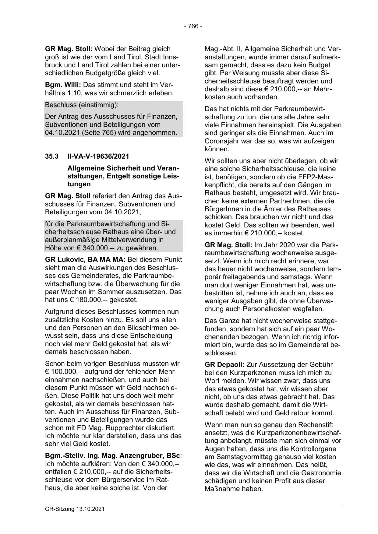 GR Mag. Stoll: Im Jahr 2020 war die Parkraumbewirtschaftung wochenweise ausgesetzt. Wenn ich mich recht erinnere, war